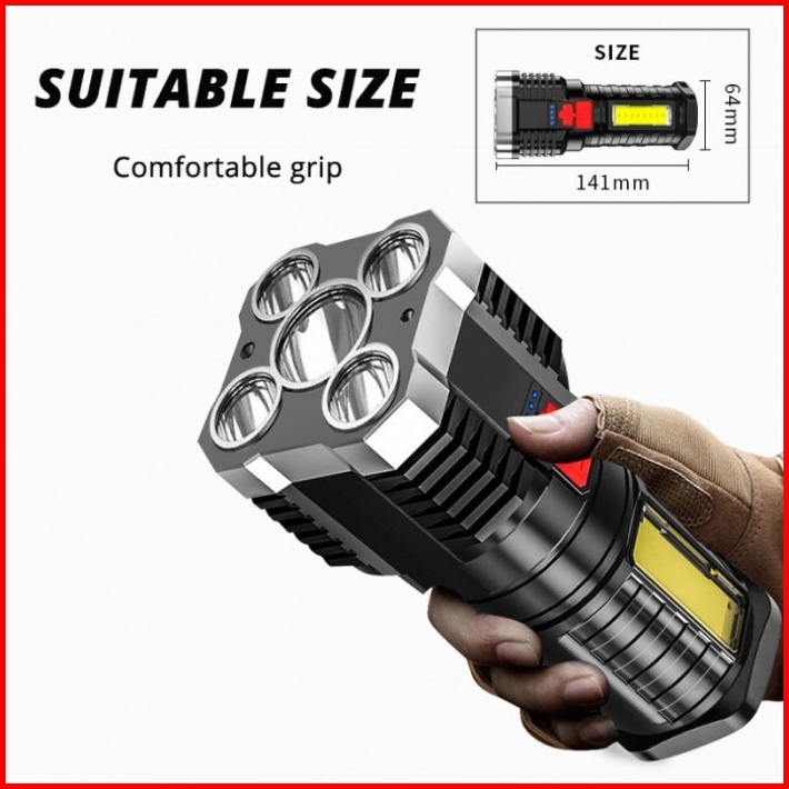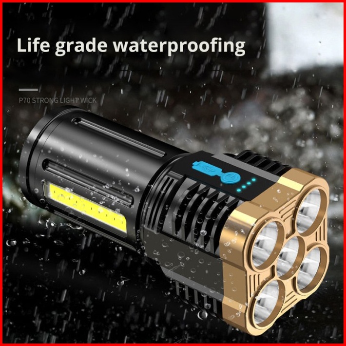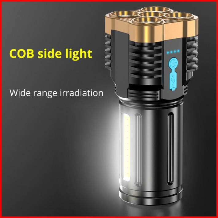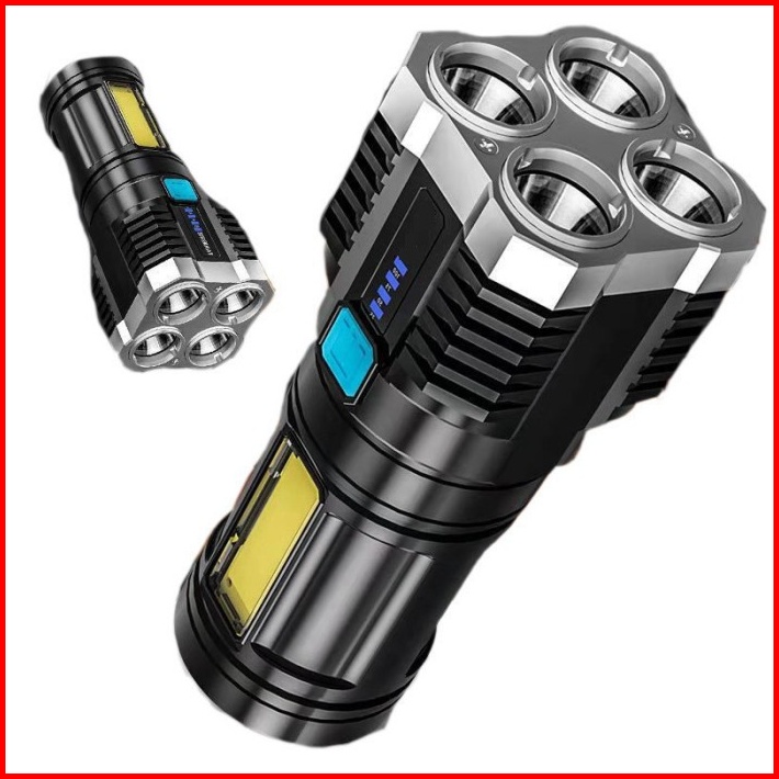 Senter Led Super Terang Jarak Jauh 4 Mode Mata Lampu Rechargeable