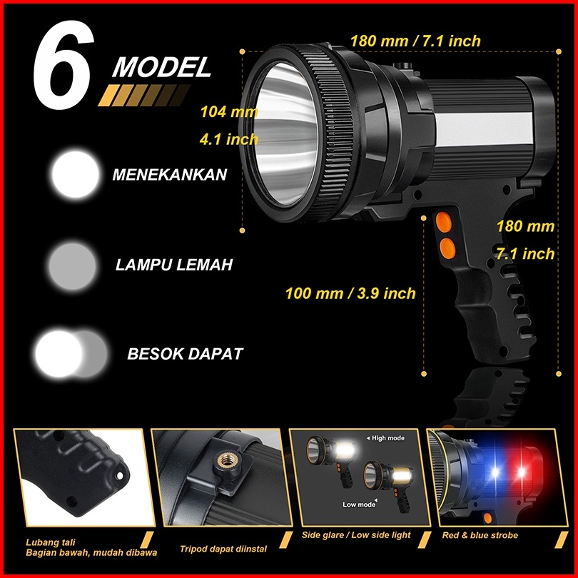 Qyd Senter Led Super Terang Dengan Lampu Samping 60 Watt Ipx4 Tahan Air Senter Bentuk L Flashlight Q963