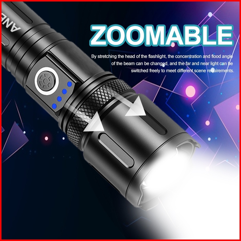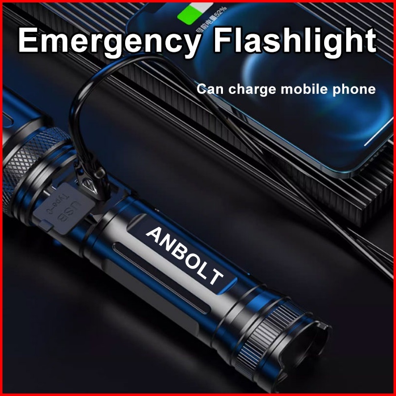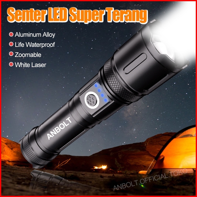 Anbolt Senter Led Super Terang Tahan Lama Tahan Air Senter Jarak Jauh 90000 Lumens Original Usb C Rechargeable Zoomable