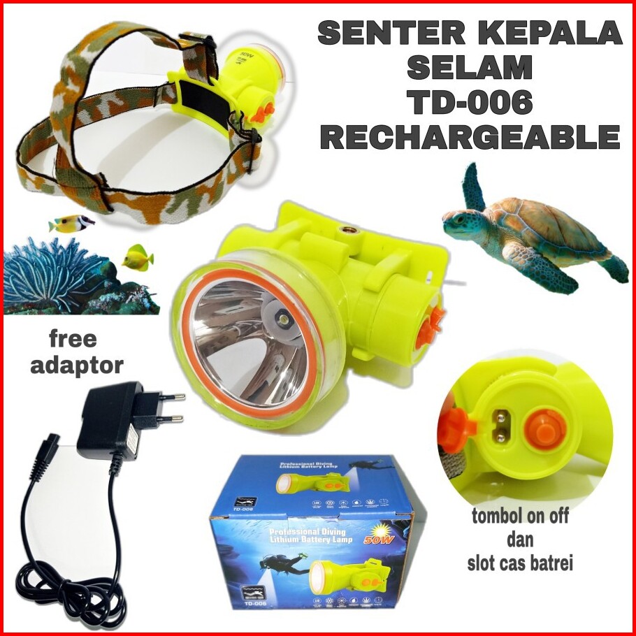 Senter Kepala Selam Headlamp Diving Led Waterproof Td-006 Longda Senter Anti Air