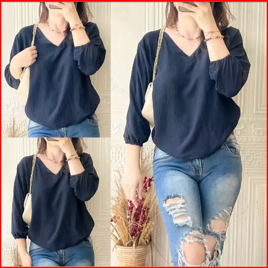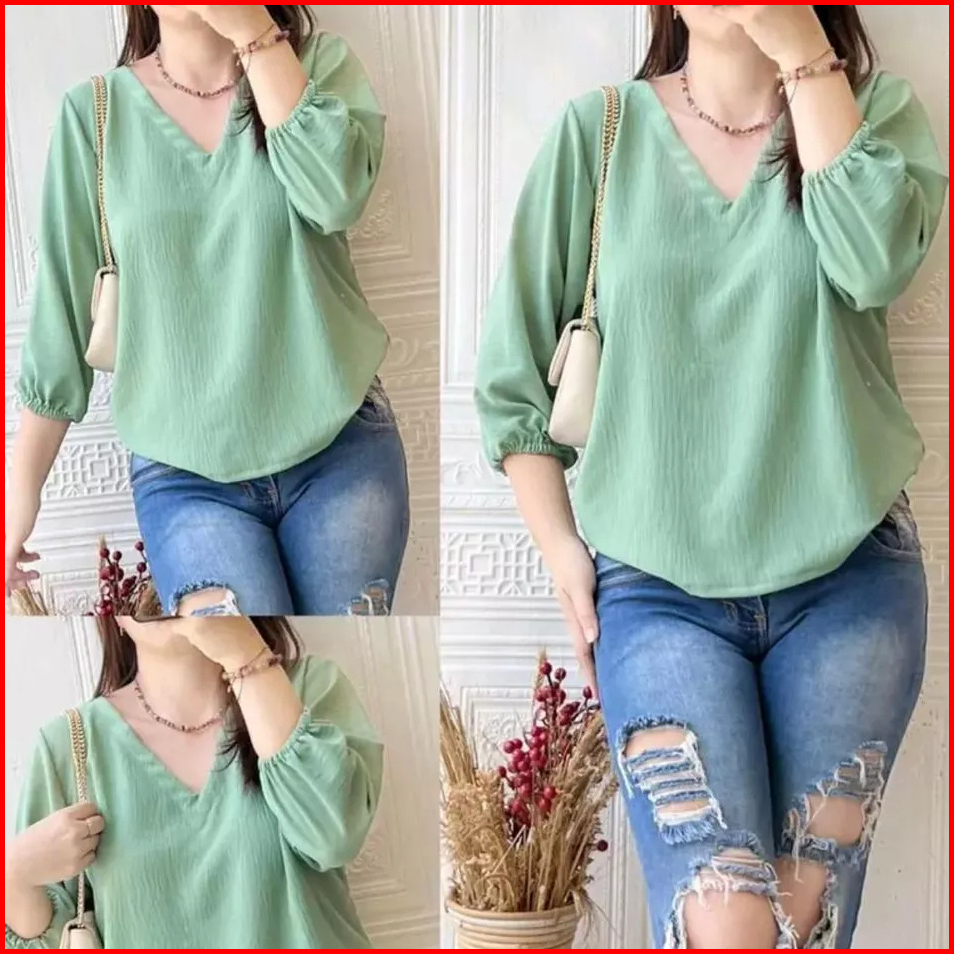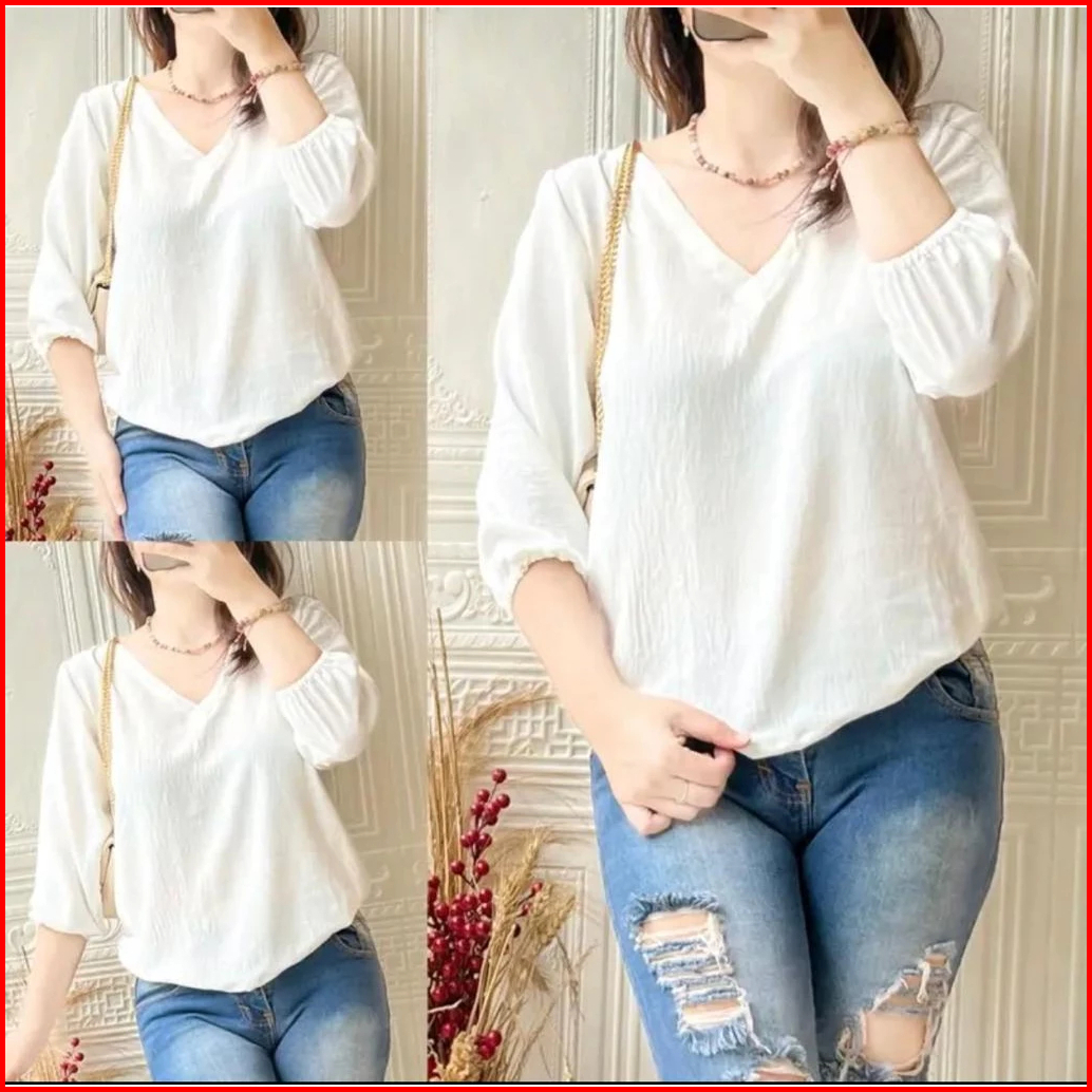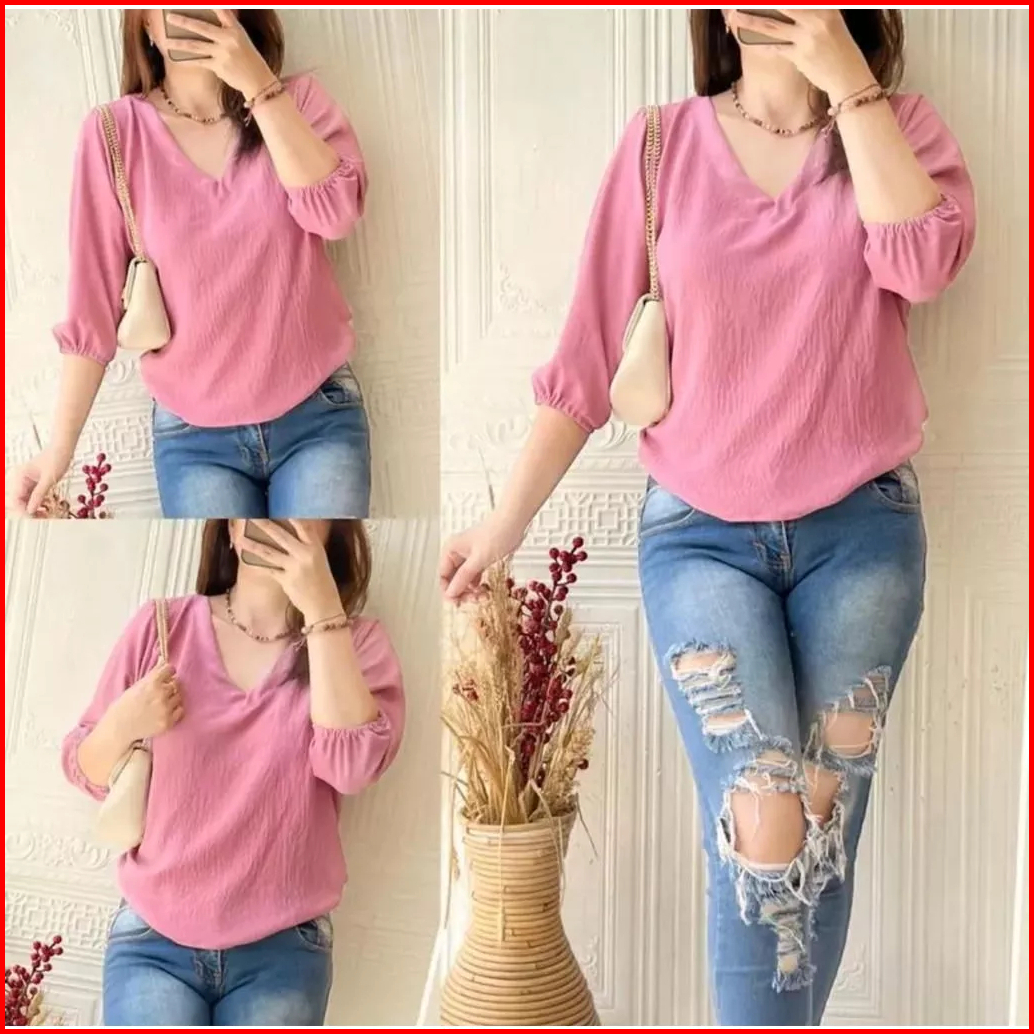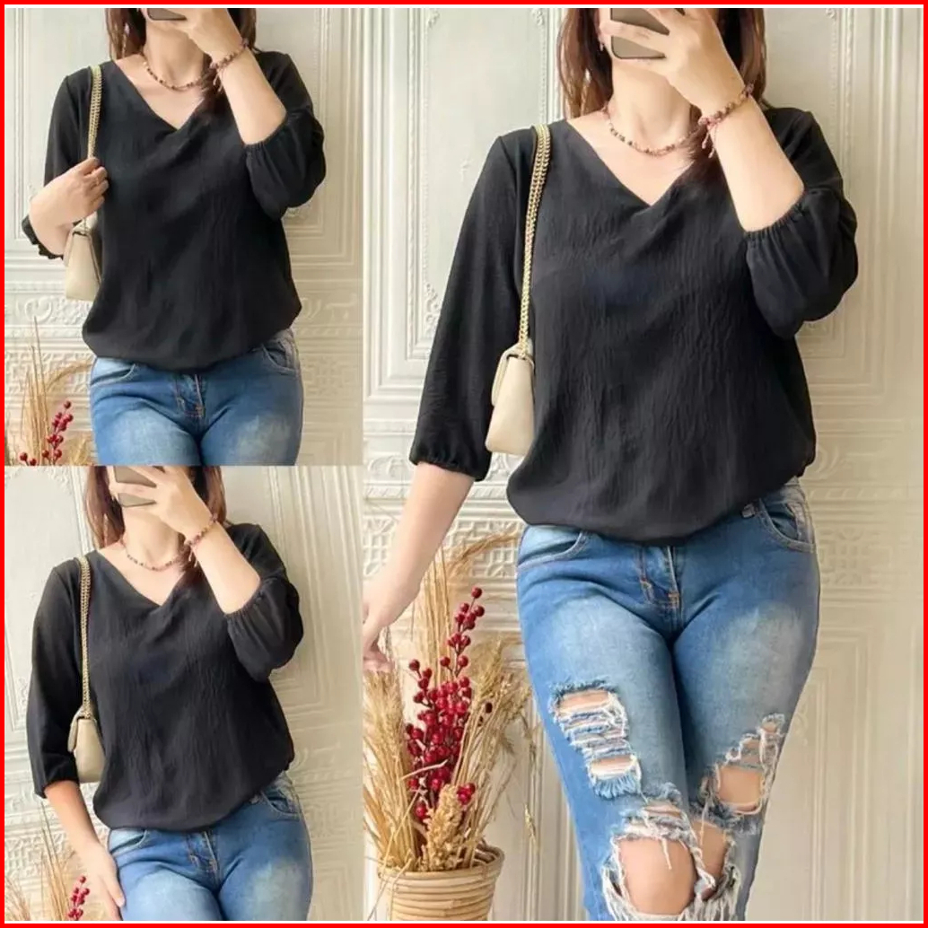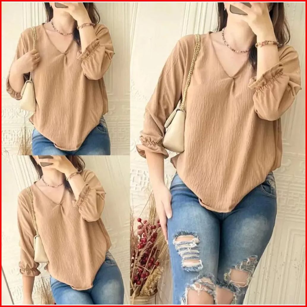 Nadira Blouse Vneck Crincle Airflow Premium Baju Atasan Wanita Blouse Terbaru
