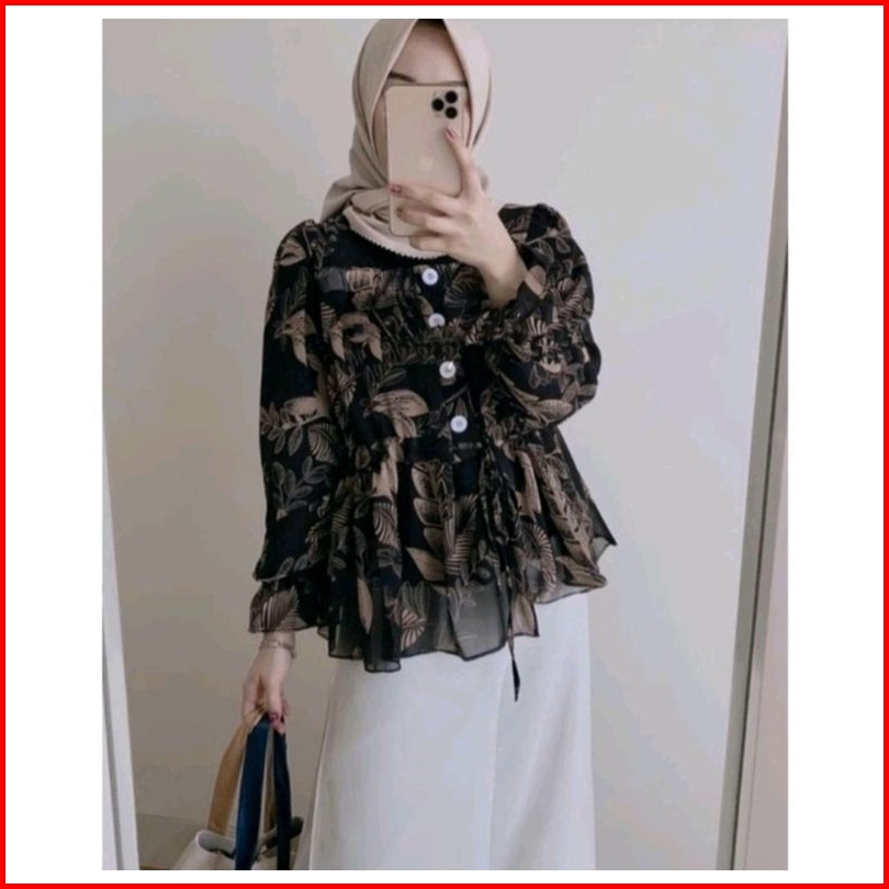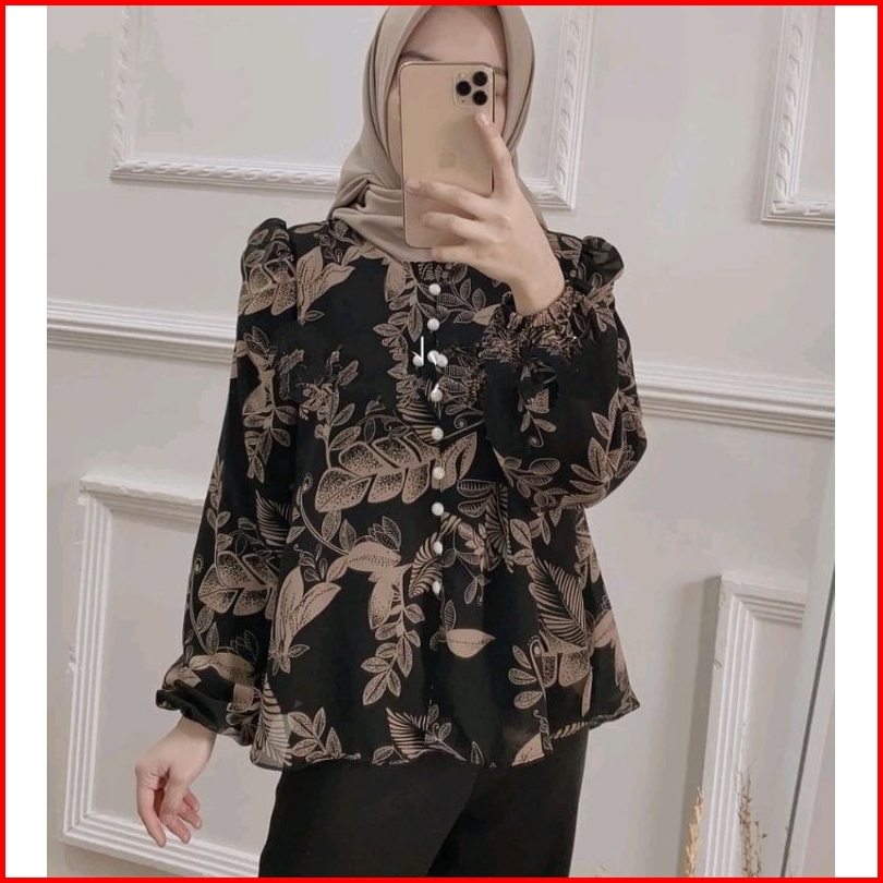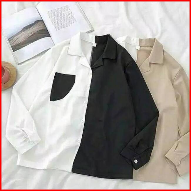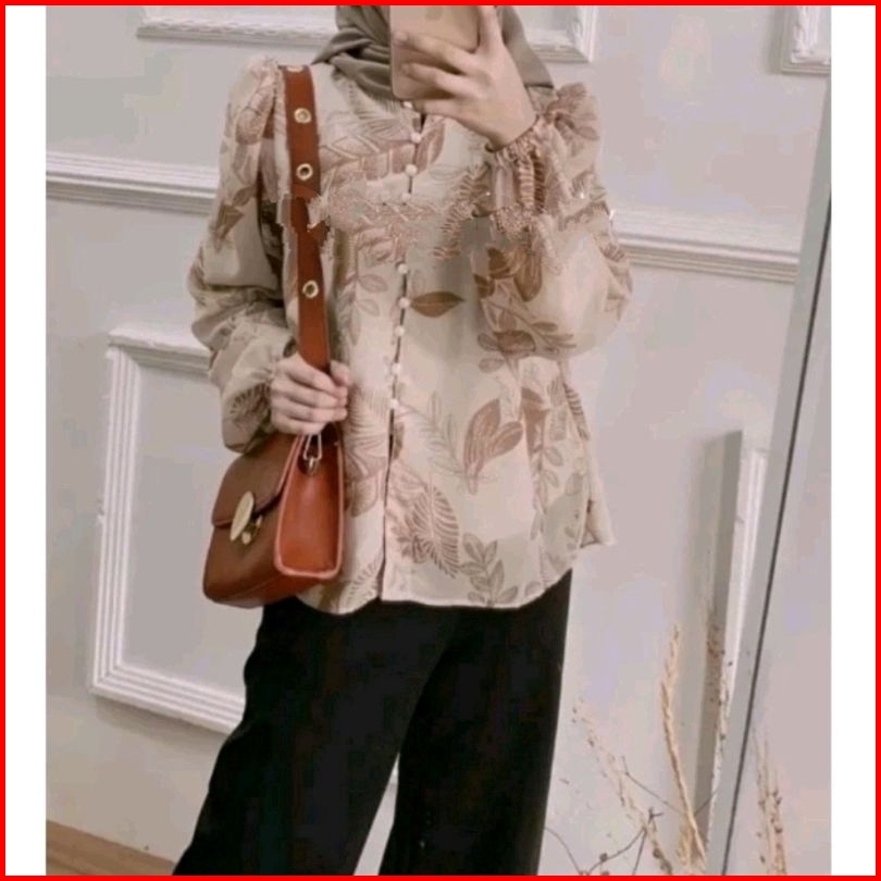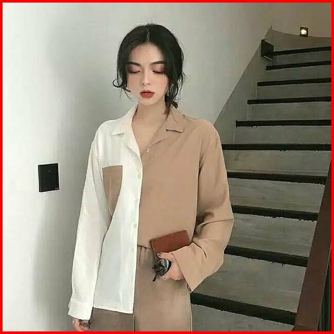Kemeja Megan Baju Atasan Kemeja Wanita Kemeja Motif Size Xl Ld 105 - 110 Cm Kemeja Kombinasi Combi Blouse