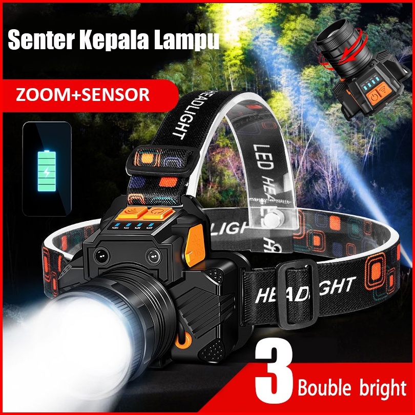 Lampu Depan Tahan Air Sensor Gerak Led Senter Super Terang Terang Anti Air Senter Kepala Lampu Senter Kepala Led T9 Zoom