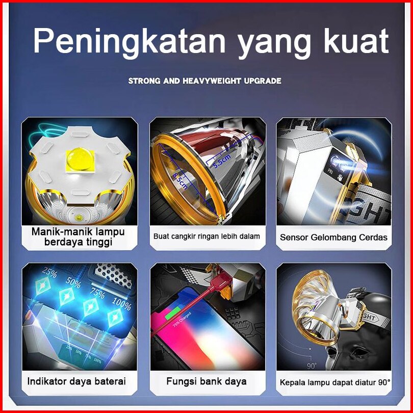 Iradiasi 30000m Penerangan Terus Menerus Selama 800 Jam Led Senter Super Terang Lampu Depan Luar Yang Kuat Lampu Depan T