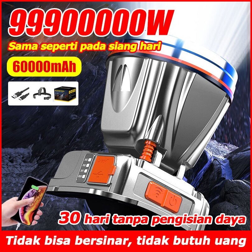 Lampu Sorot Kepala Menyinari 100.000 Meter 30 Hari Tanpa Pengisian Daya Senter Super Terang Kepala Senter Kepala Super T
