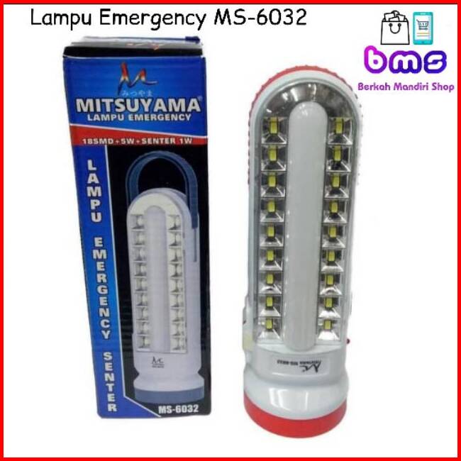 Lampu Emergency Ms-6032 Senter Led 18 Smd 5 W Senter 1 W Mitsuyama