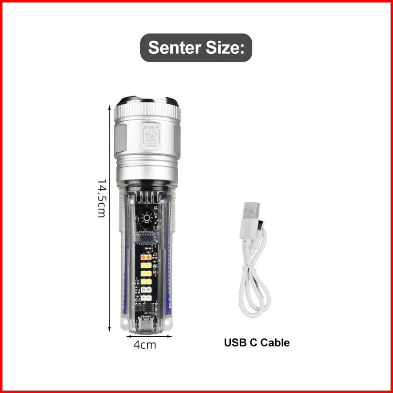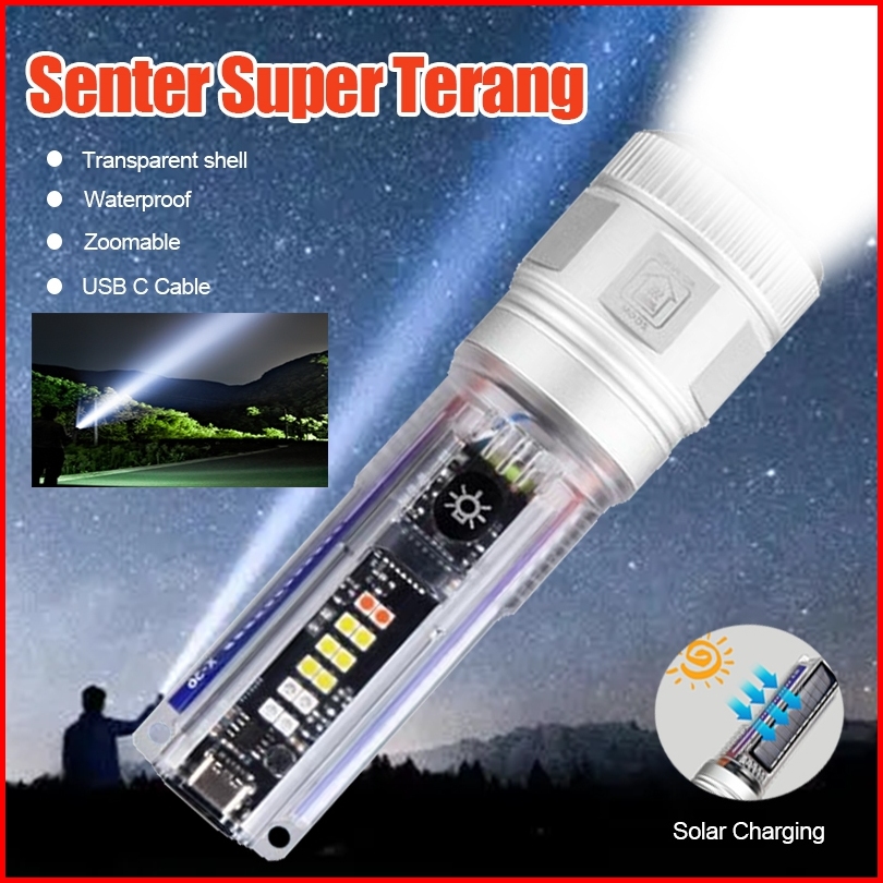 Anbolt X36 Senter Super Terang 100000 Lm Ori Anti Air Senter Laser Jarak Jauh Transparent Shell Zoom Senter Maghnet Mult