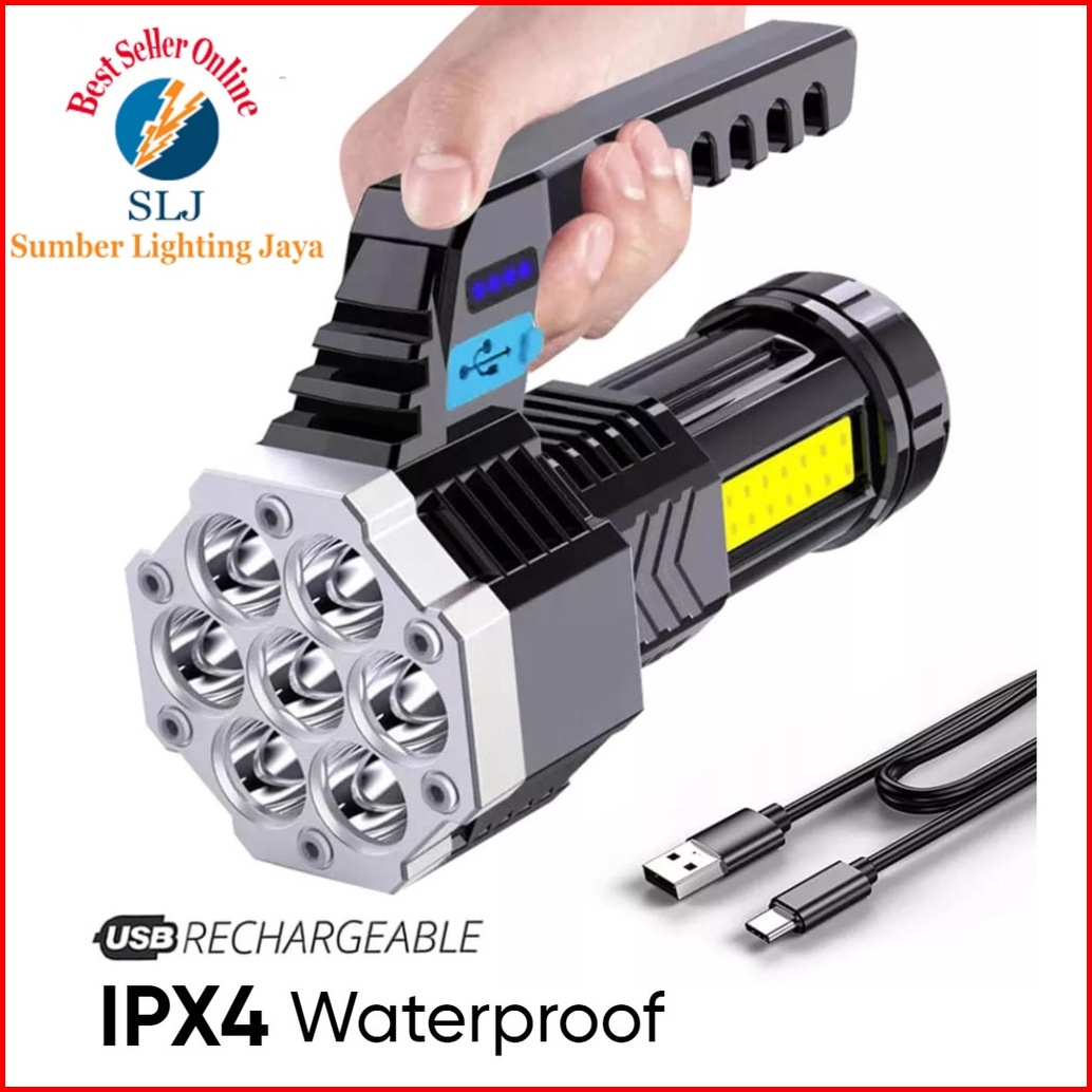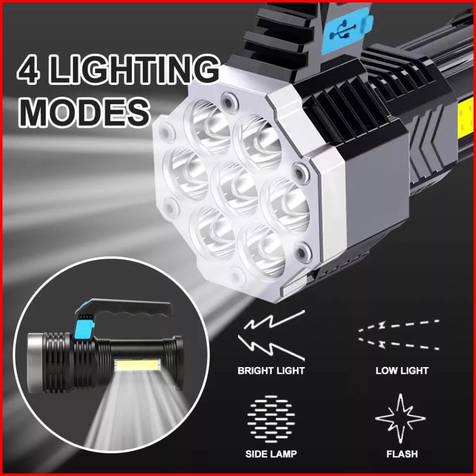 Ready Stok Senter Led Gagang 7 Mata 60w 20w Senter Cas Usb Super Terang