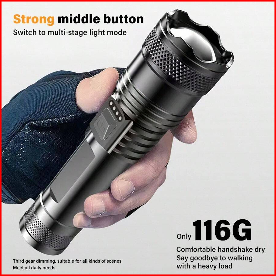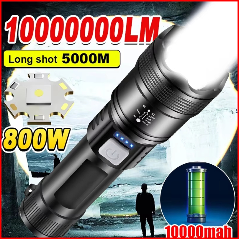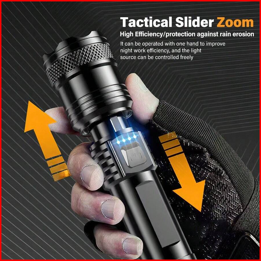 Anbolt Senter Super Terang Led 10000 Lumens Waterproof Outdoor Senter Swat Police Tahan Lama Ipx4 Zoom Rechargeable Sent