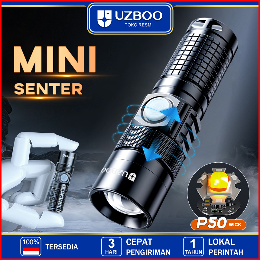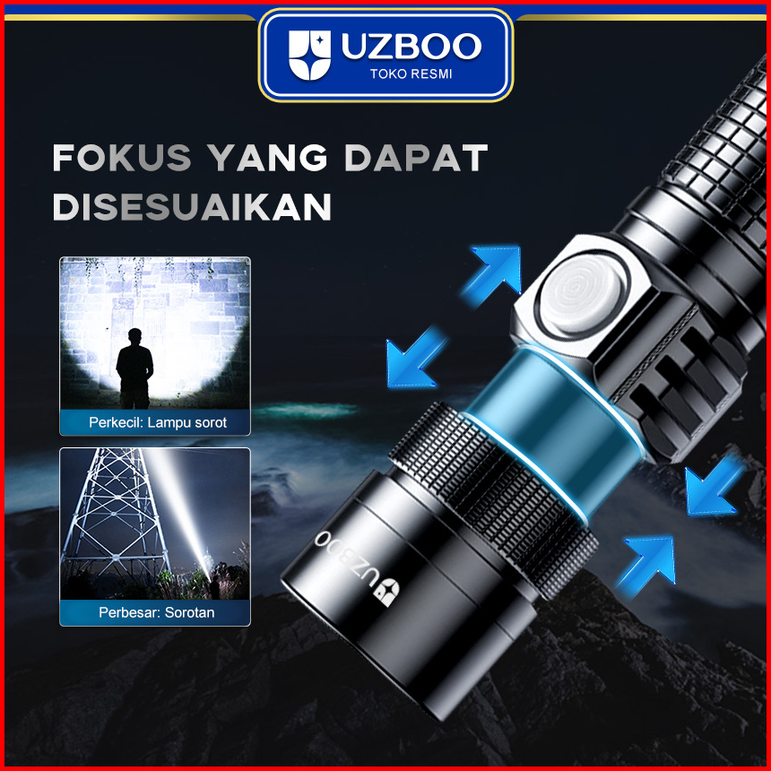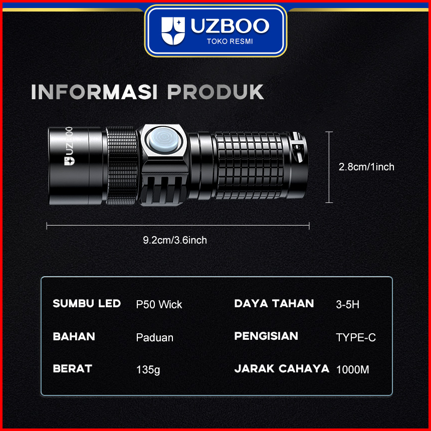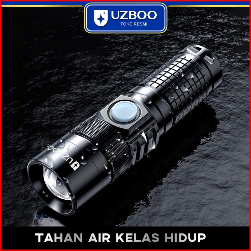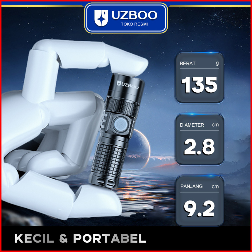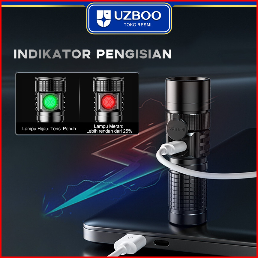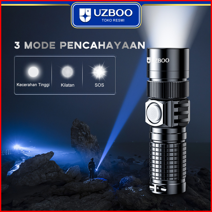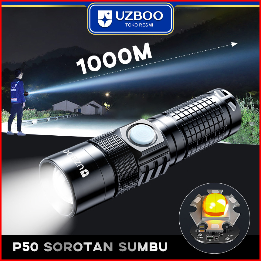 Uzboo Senter Super Mini Jarak Jauh 1000m Lampu Senter Led Senter Fokus Teleskopik Senter Isi Ulang Portabel Luar Ukuran