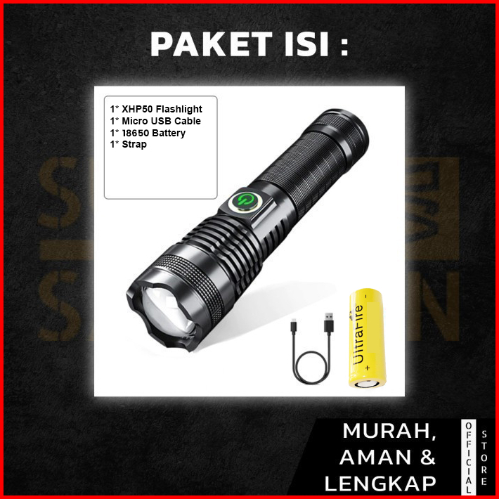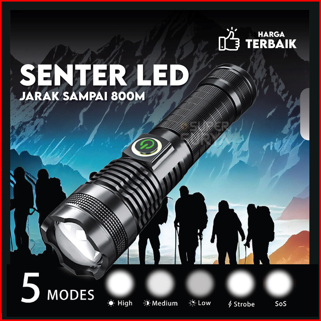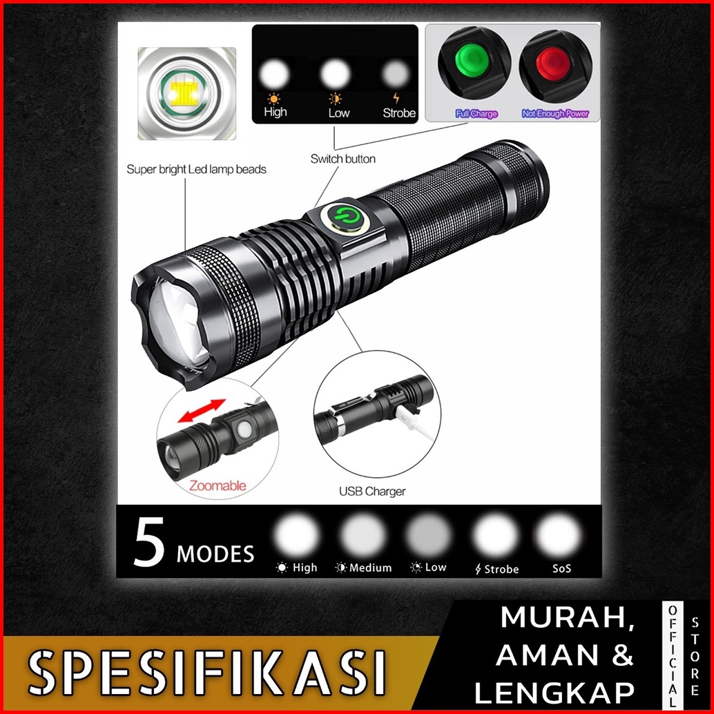 Wewant Senter Swat Super Terang Torch Battery 18650 High Power Flashlight Led Tahan Air