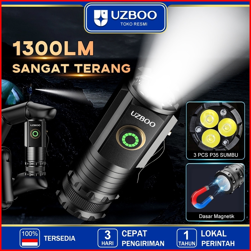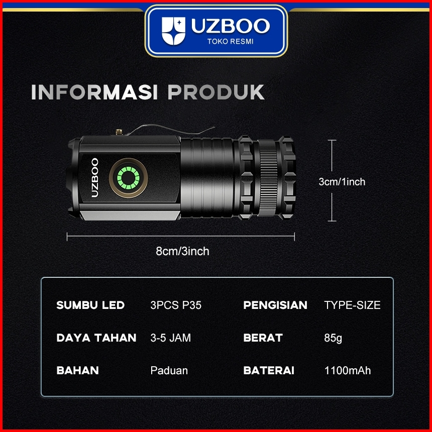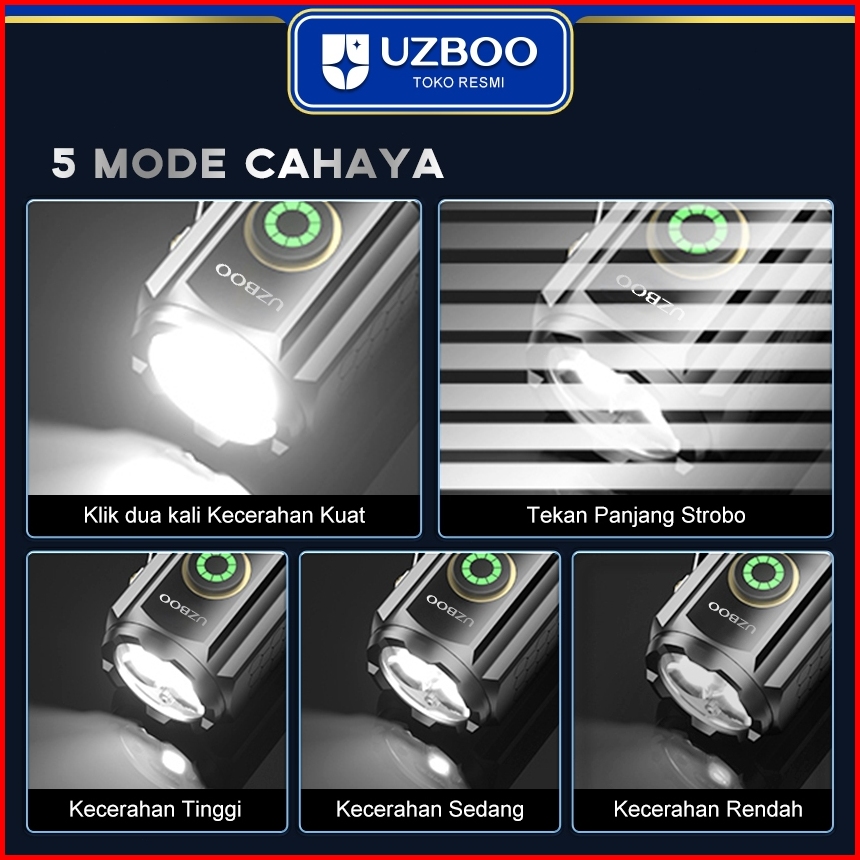 Uzboo 1300lm Senter Mini Tinggi Terang Senter Led Torch Light Outdoor Ukuran Saku Senter Isi Ulang Tahan Air Lampu Obor