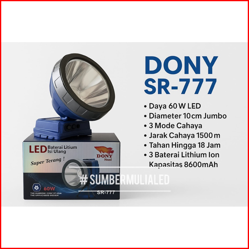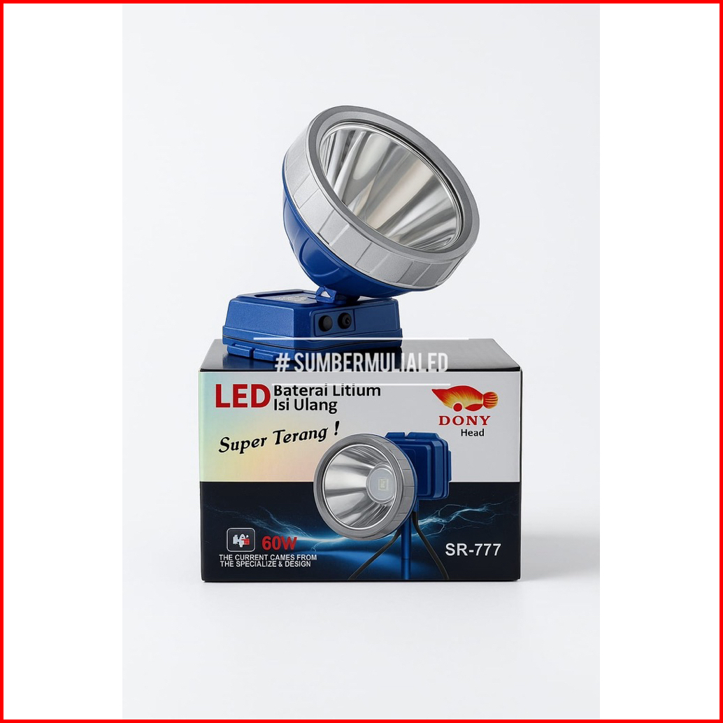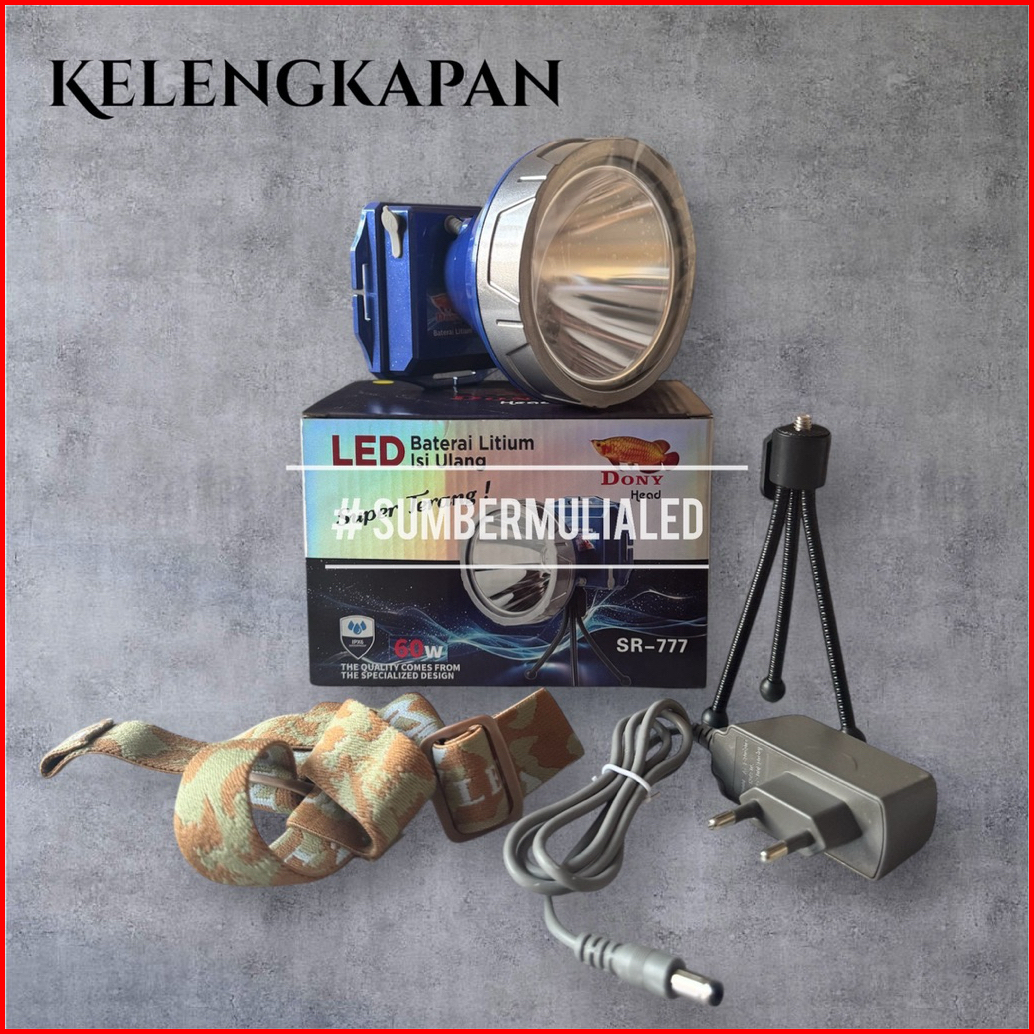Senter Kepala Dony Sr-777 Led 50w Upgrade Jadi 60w - Cahaya Super Terang - Jarak Jauh - Tahan Lama
