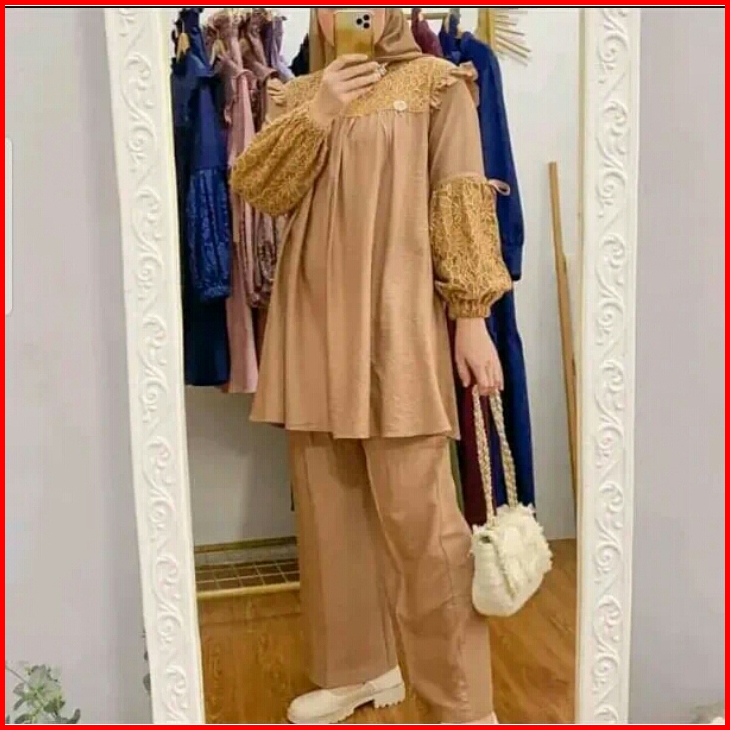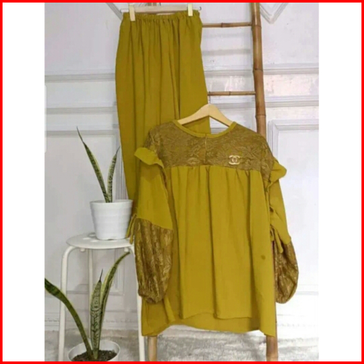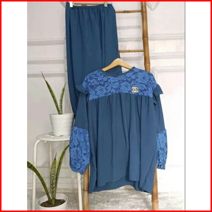 Promo Stelan Crinkle Combinasi Brokat One Set Wanita Setelan Mix Brukat Baju Atasan Wanita Terbaru One Set Wanita Dewasa