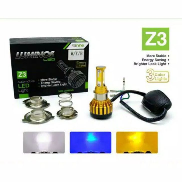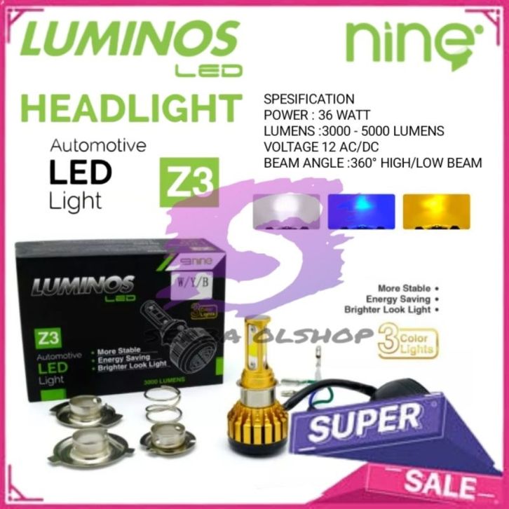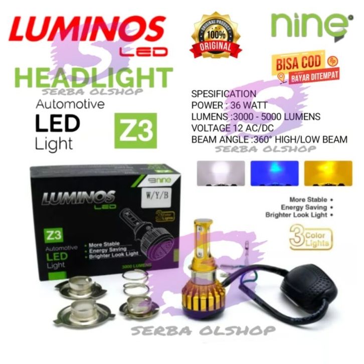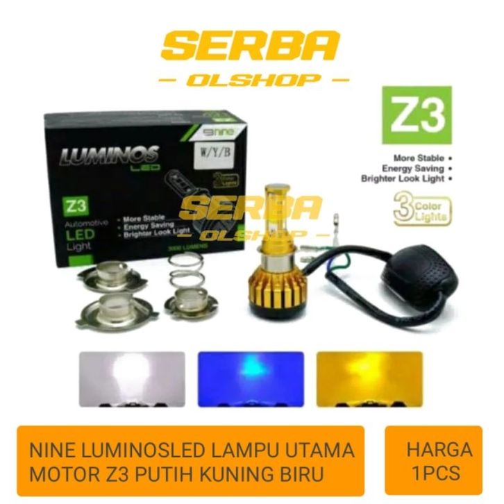NINE LUMINOSLED LAMPU LED DEPAN MOTOR Z1 / Z2 DAN Z3 3 WARNA PUTIH KUNING BIRU BERGARANSI SANGAT TERANG ORIGINAL