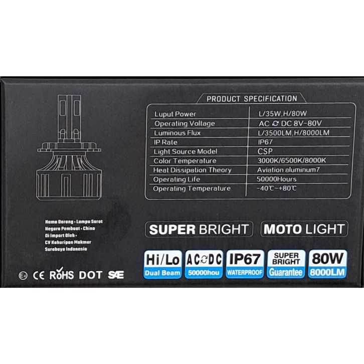 Dop Lampu depan Bohlam LED 4 Sisi 80W dan 6 Mata AC DC Kipas Universal Ride IT