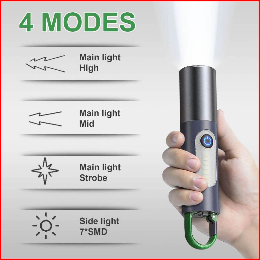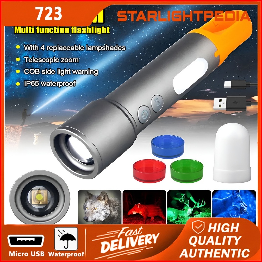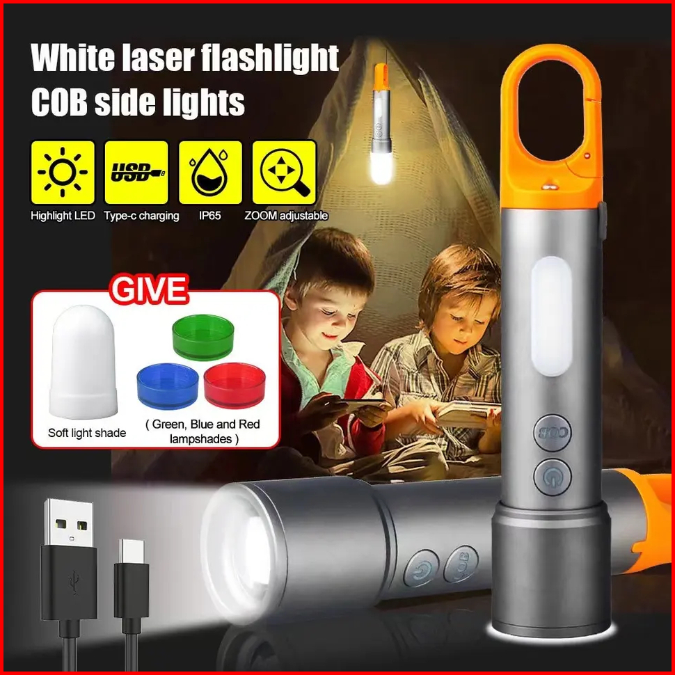 Senter Jarak Jauh 3 In 1 Lampu Tenda Torch Light Type C Cas 4 Mode Zoomable Waterproof Ipx4
