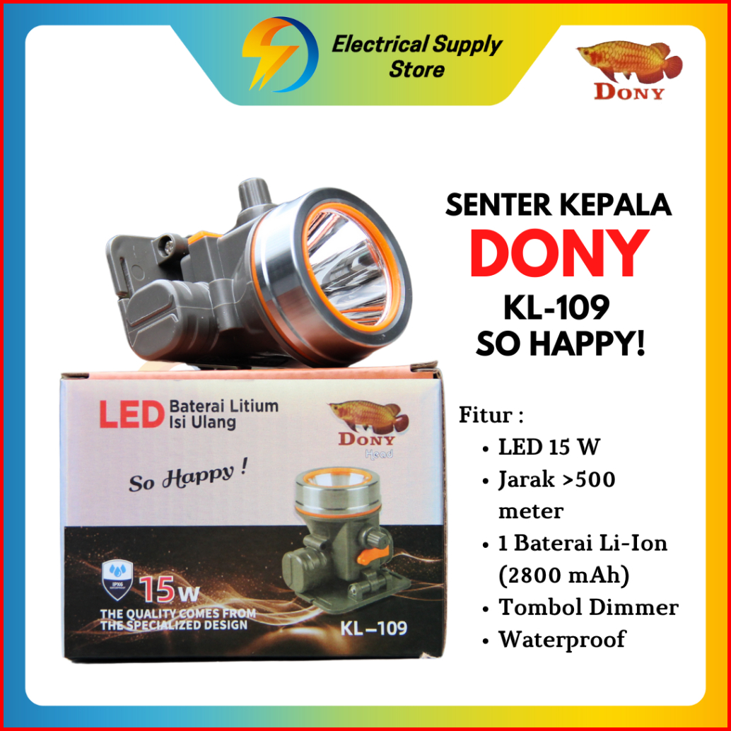 Senter Kepala Dony Kl-109 Led 15 W Terang Cahaya Putih Kuning Ukuran Kecil Dimmer