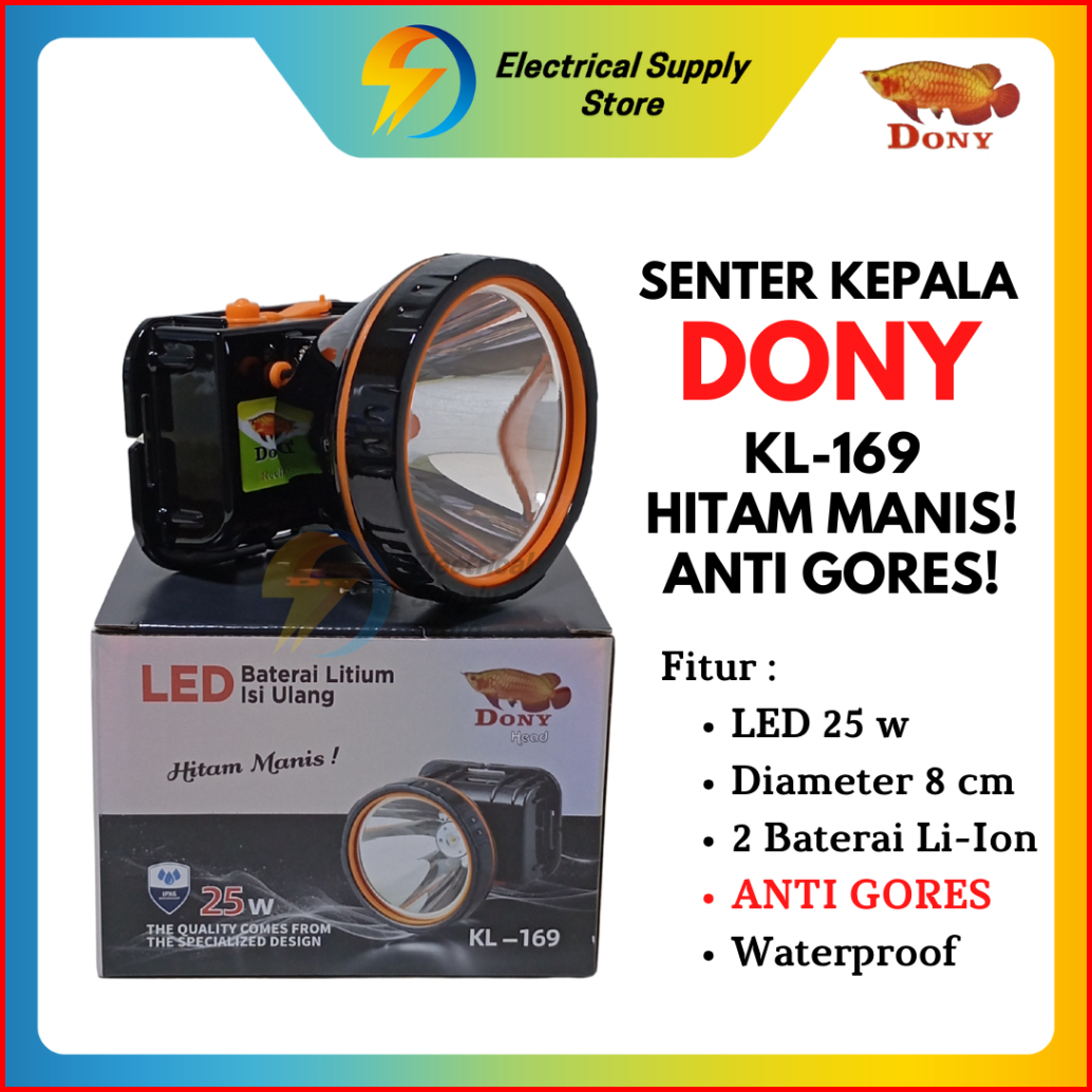 Senter Kepala Dony Kl-169 Led 25 W Terang Cahaya Putih Kuning Anti Gores Anti Air