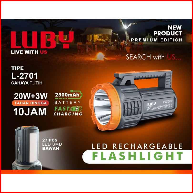 Senter Luby Emergency Led L-2700 L-2701 L-2702 Led Rechargergeable Flashlight