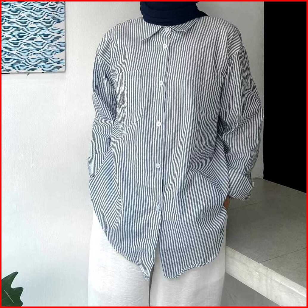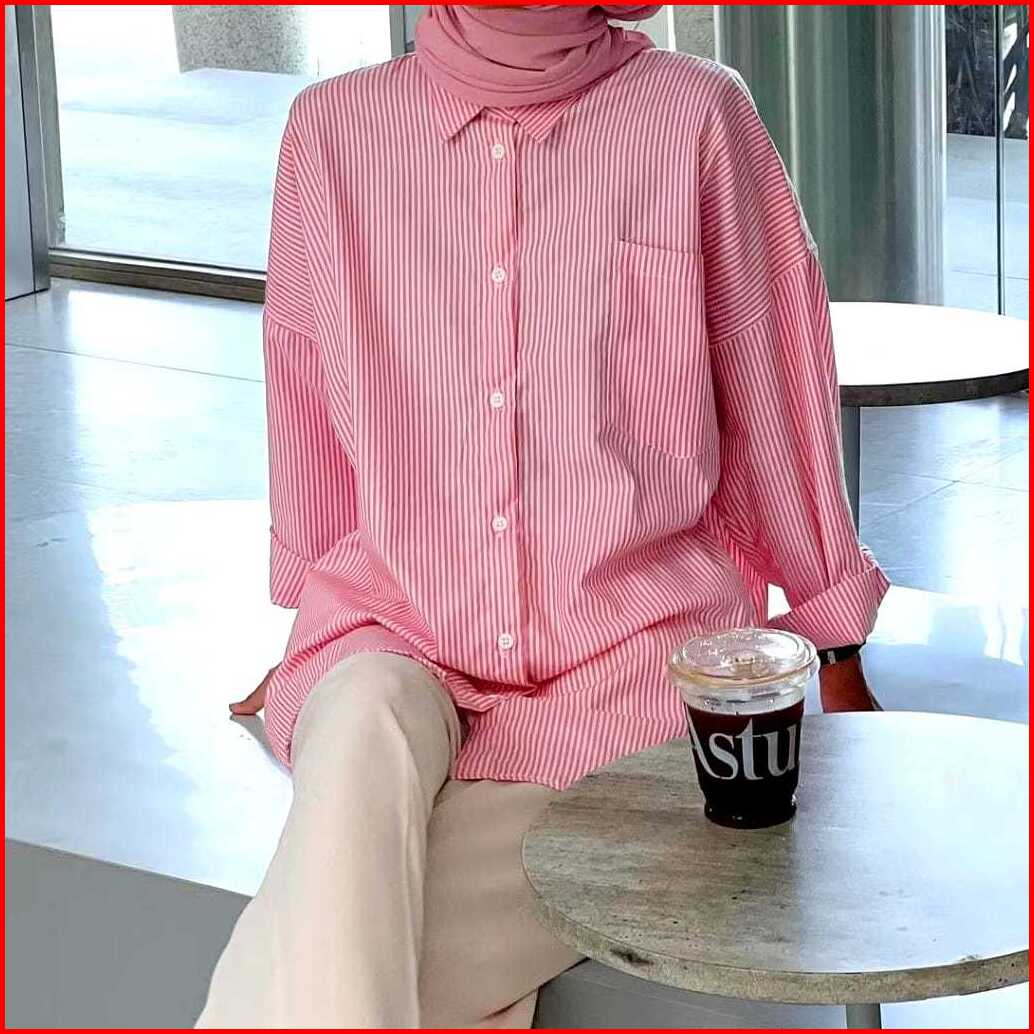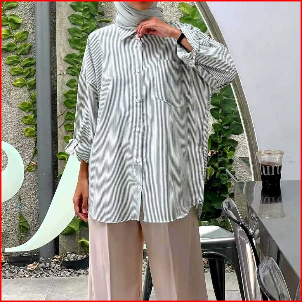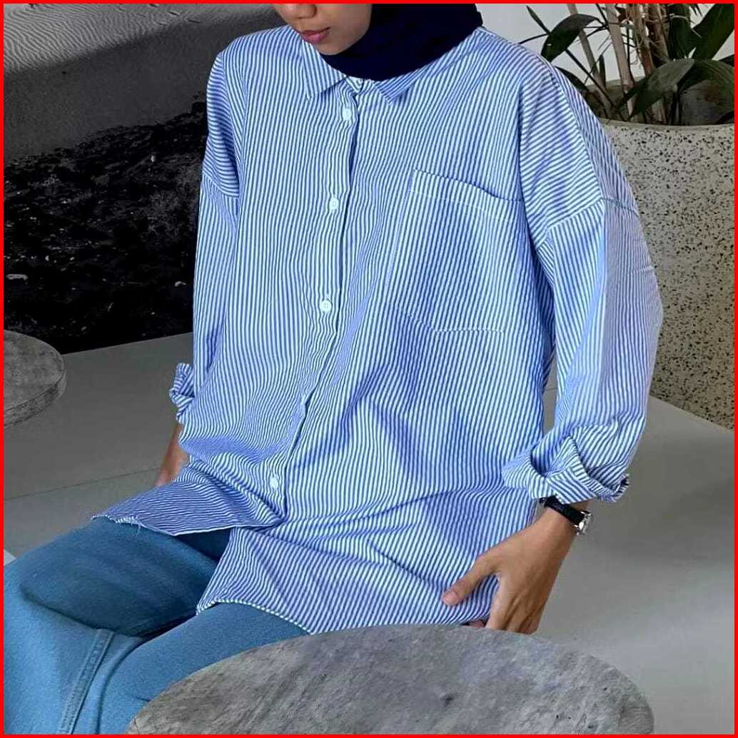 Yhf - Atasan Wanita Dewasa Kemeja Salur Stripe Motif Terlaris Atasan Panjang Muslim S M L Xl Xxl L