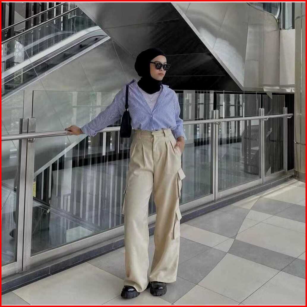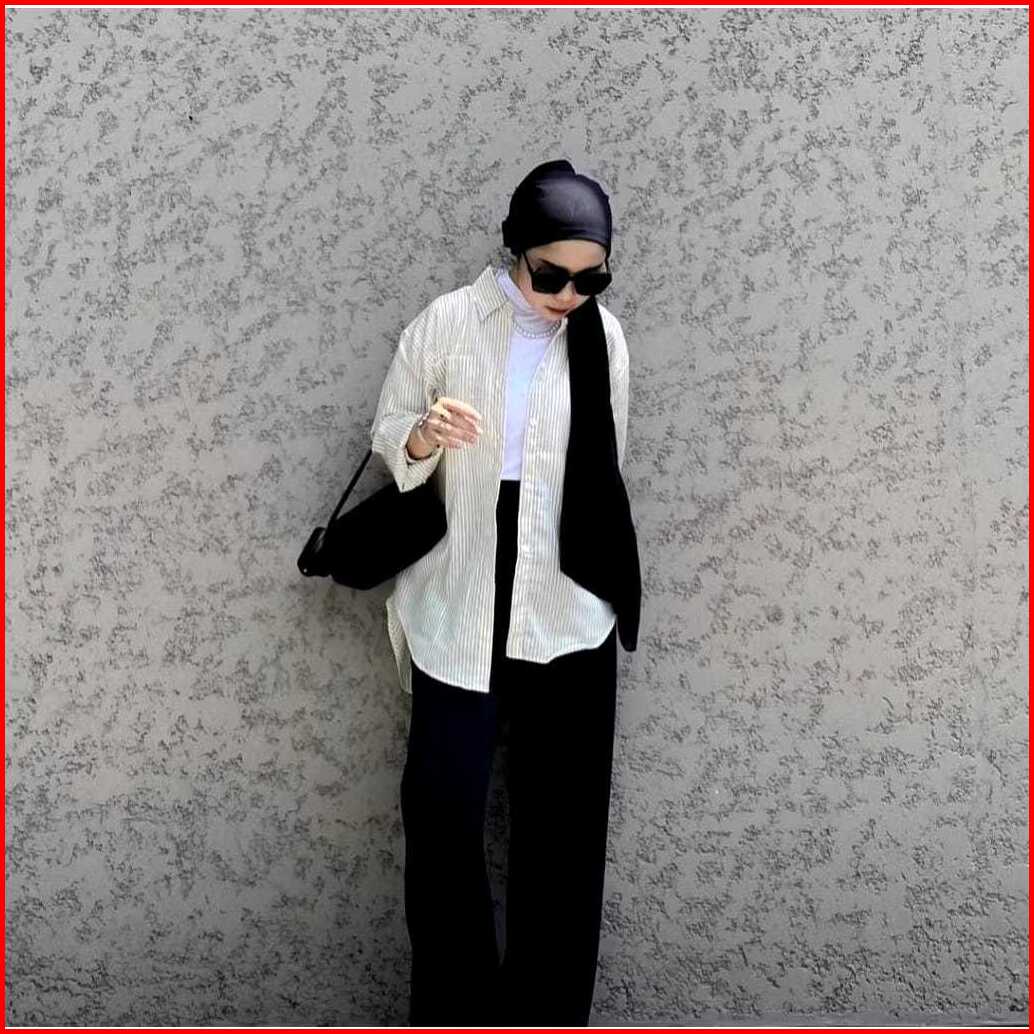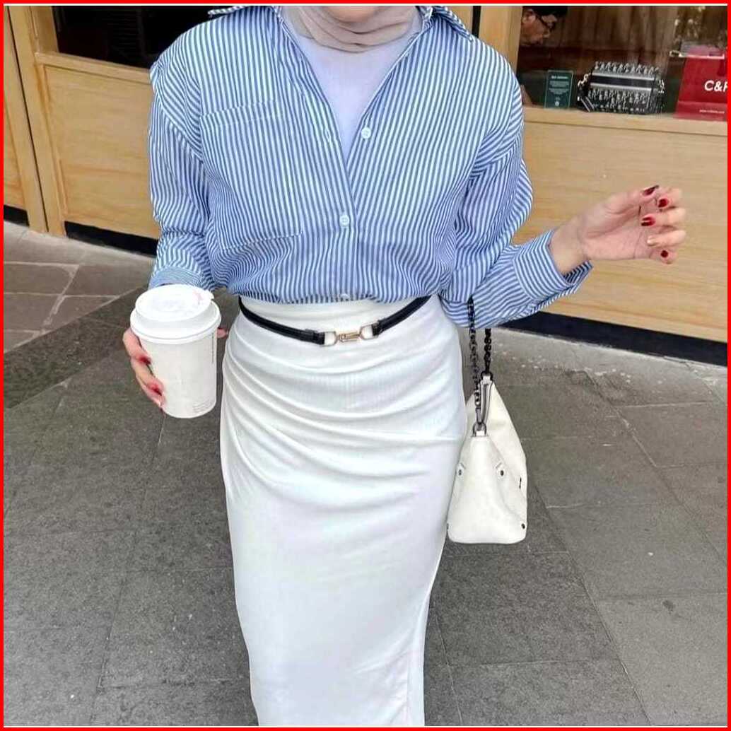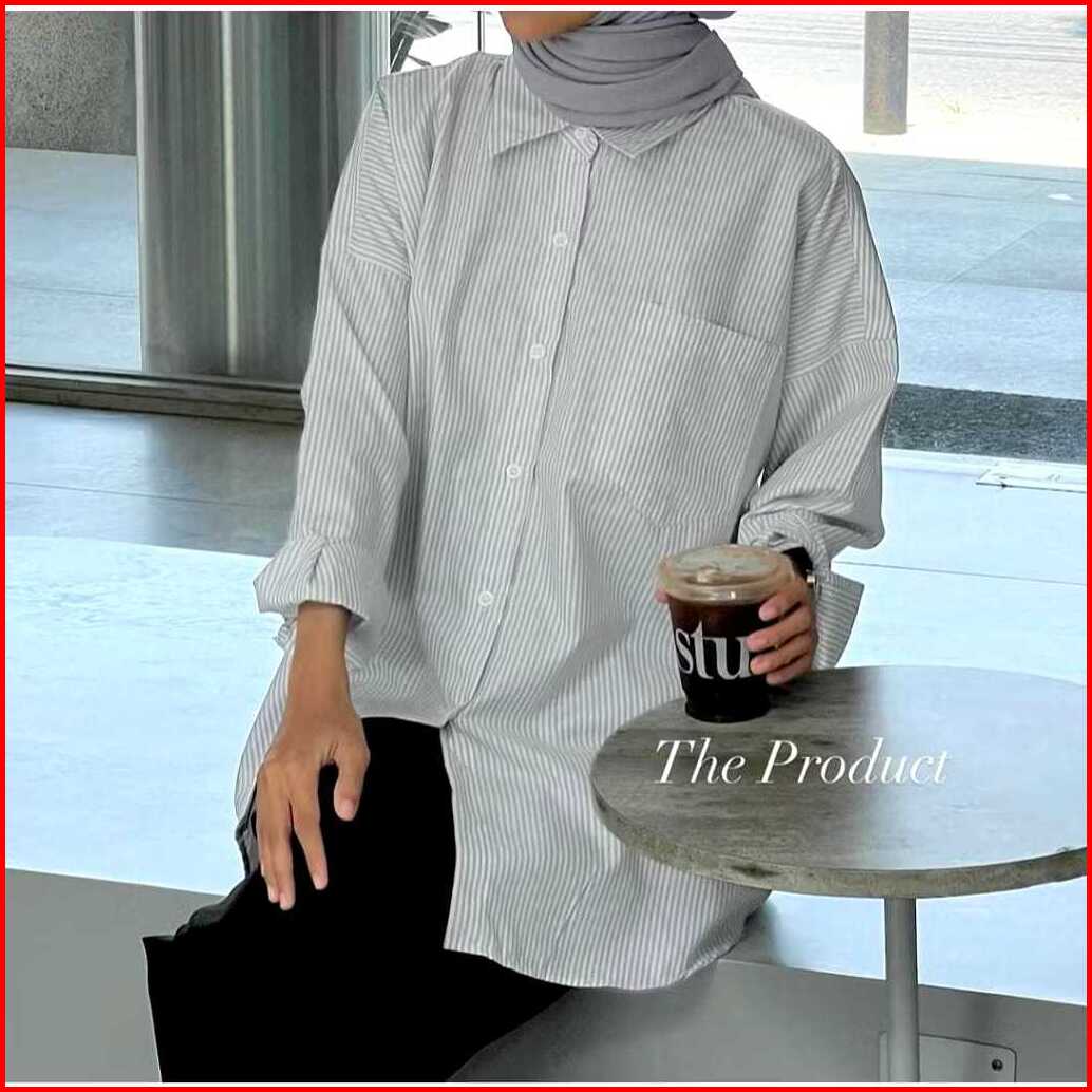 Yhf - Atasan Wanita Dewasa Kemeja Salur Stripe Motif Terlaris Atasan Panjang Muslim S M L Xl Xxl L