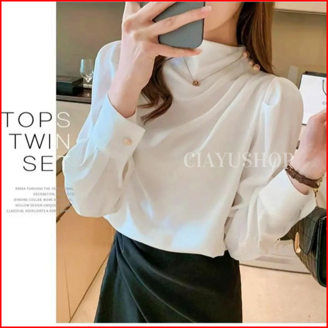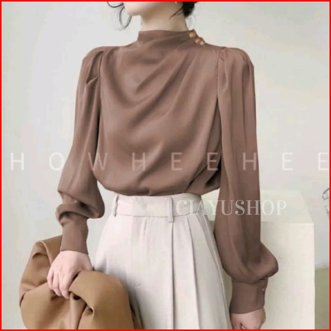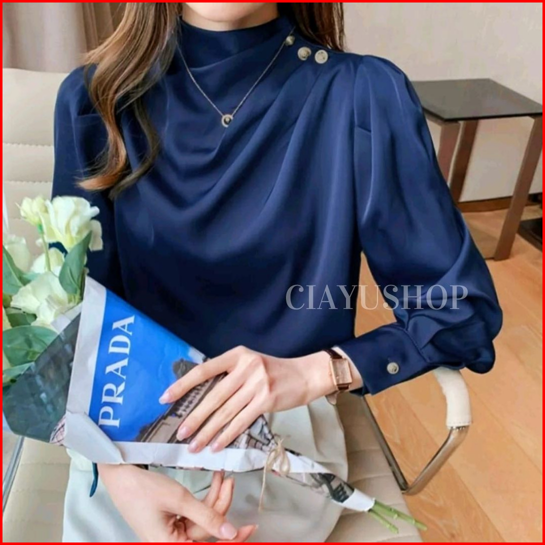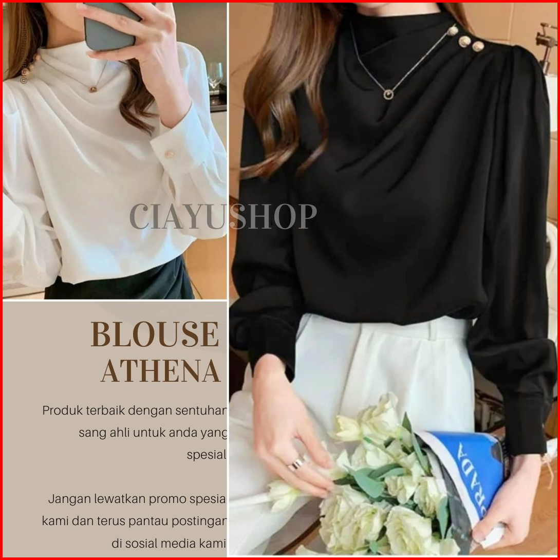 Blouse Athena Button Shoulder M L Xl Silk Super Baju Atasan Wanita Formal Kerja Bisnis Terbaru