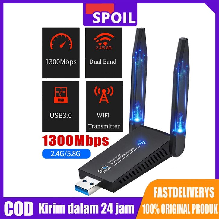 WIFI ADAPTER TERBRAU SPOIL USB 3.0 WIFI ADAPTER 1300MBPS 4.2 DUAL BAND 2.4/5GHZ DONGLE WIFI ADAPTER TERLARIS TERMURAH