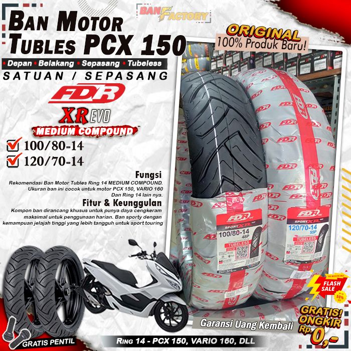 Sepasang Ban Motor Tubles PCX 150 VARIO 160 FDR XR EVO Ring 14 Ban Motor Tubeless Depan Belakang PCX Ring 14