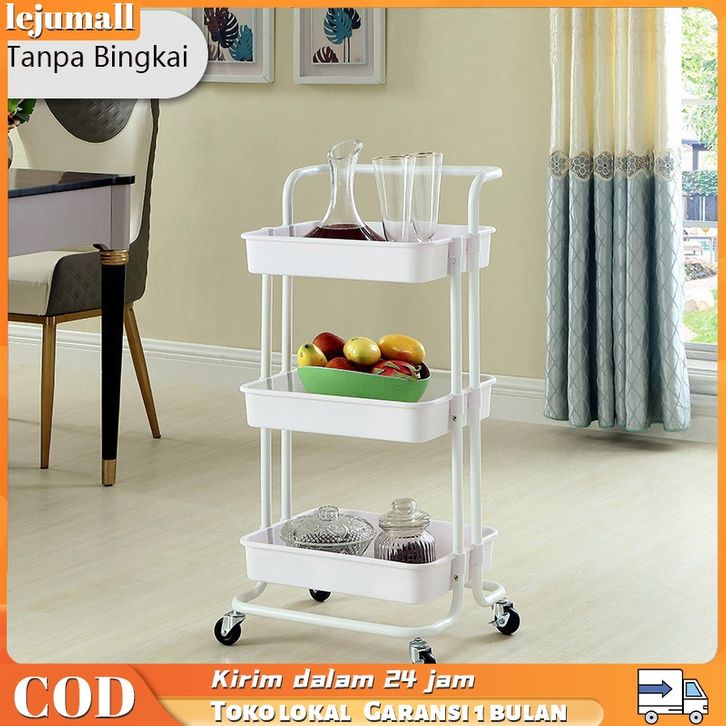 Rak Troli Dengan Roda 3 Susun SerbaGAANa Rak Dapur dengan Keranja Stainless Rak Buku Portable / Rak Bumbu Dapur / Rak S