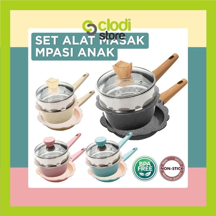 Panci Mpasi Bayi Set 4Pc Sakura Flower Cookware set Peralatan dapur Mpasi Anak Baby Pan Health Food9rade AMAN UNTUK MP