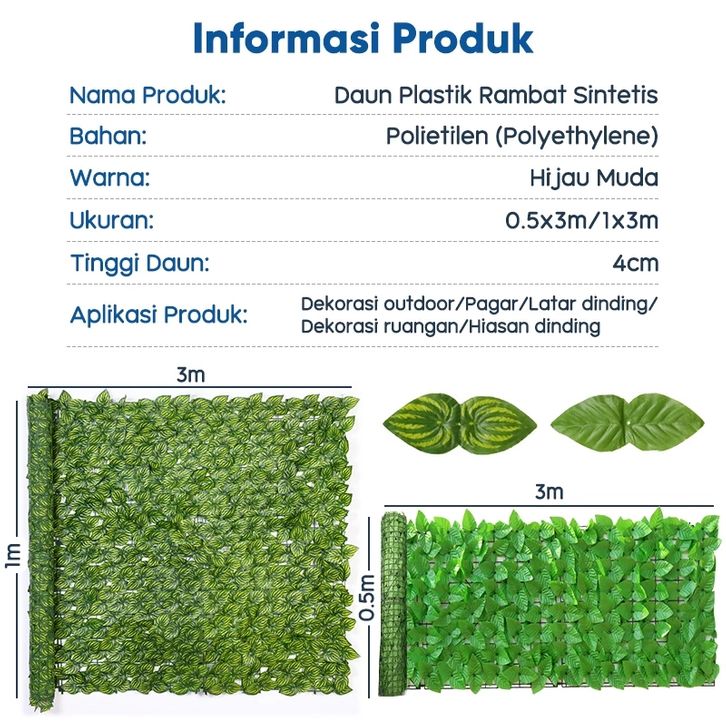 Daun Dinding Sintetis 1M×3M Tanaman Hias Daun Rambat Sintetis Pajangan Dinding Daun Hijau Aesthetic Baru termurah