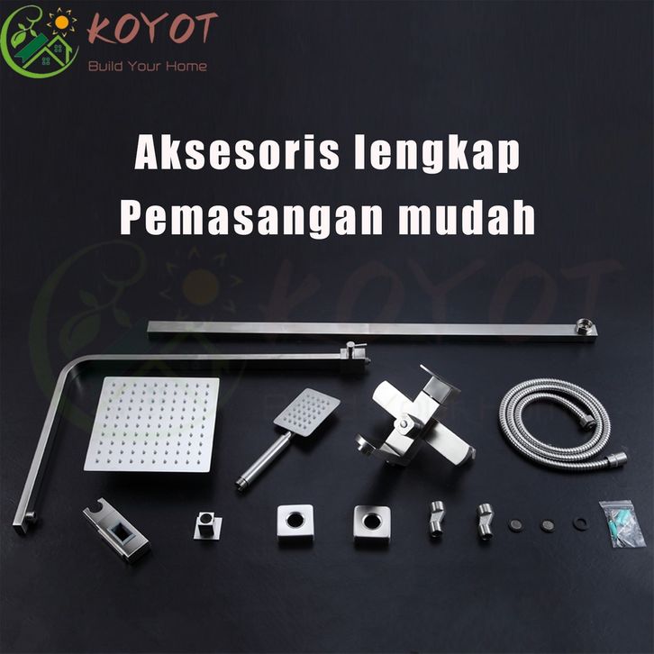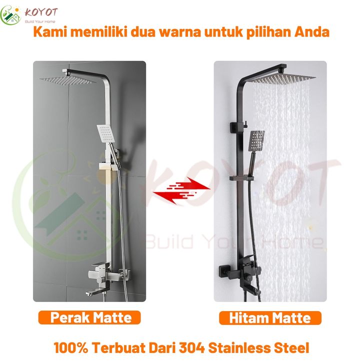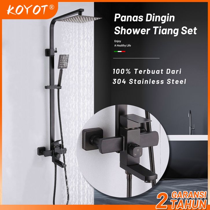 Shower Kamar Mandi Set KOYOT 304 Stainless Steel Panas Dingin Hand Persegi Hitam Matte