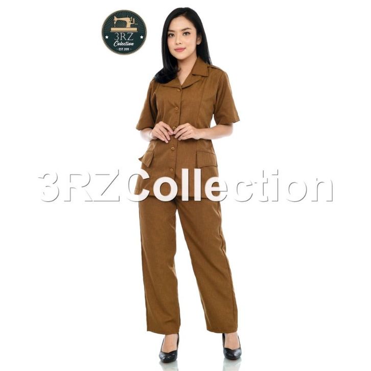 Baju Seragam Dinas PNS PDH Wanita - Baju Seragam Dinas Lengan Pendek Wanita Blazer Celana Kerja
