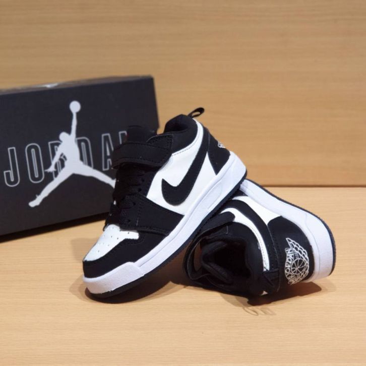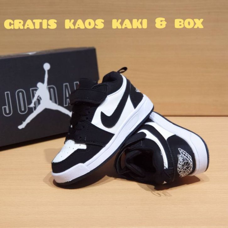 SEPATU ANAK KIDS SEPATU SEKOLAH ANAK SNEAKER ANAK NIKE AIR JORDAN UNISEX COWO CEWE BLACK WHITE PREMIUM