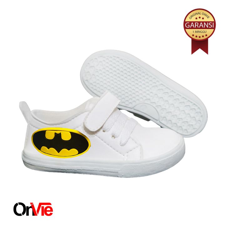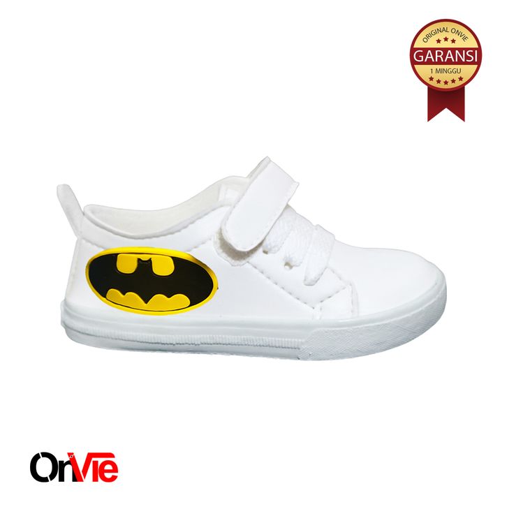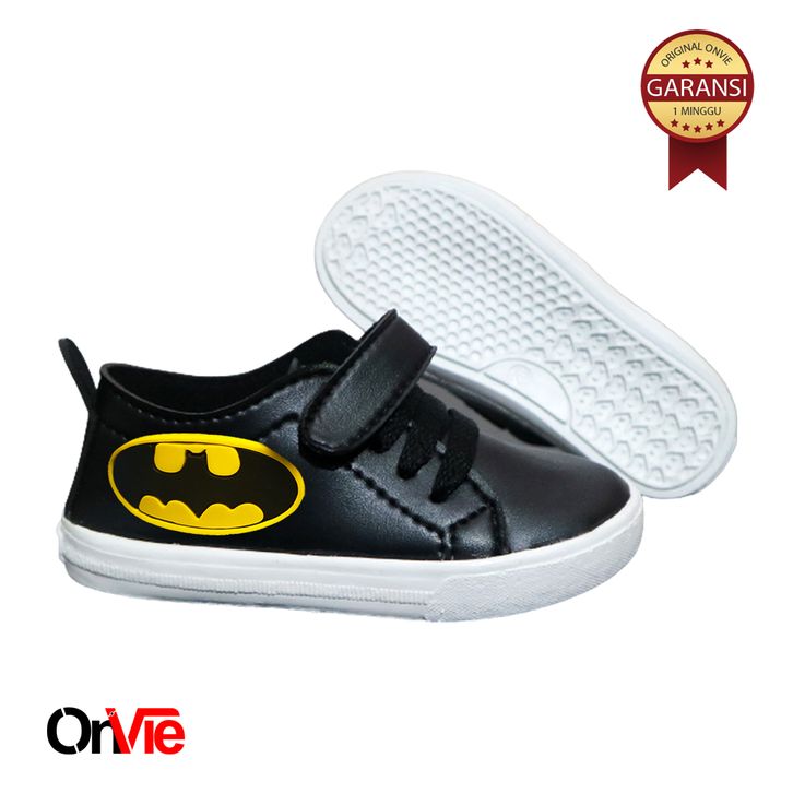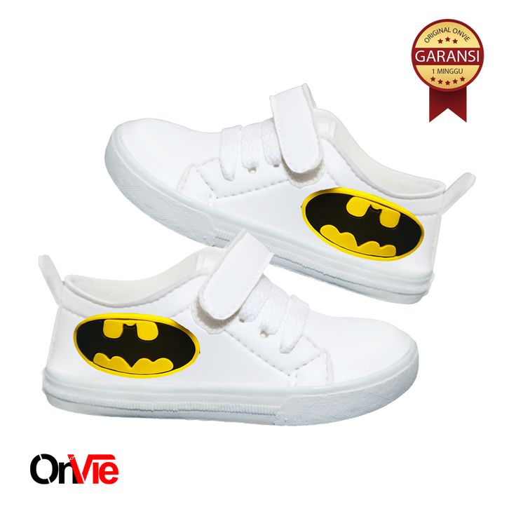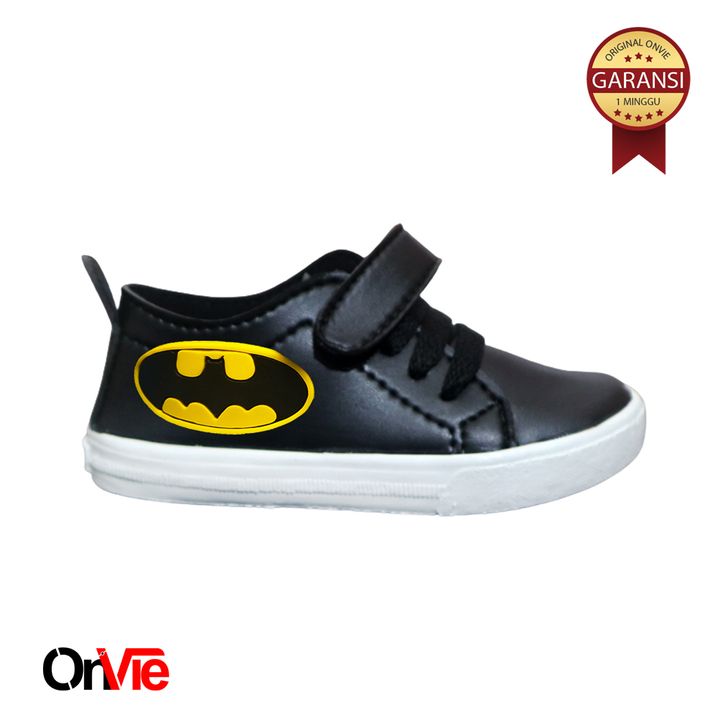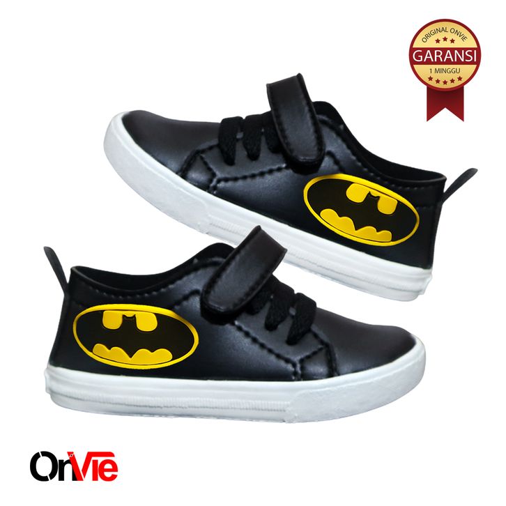 Sepatu Sneaker Anak Laki-laki Hitam Putih Motif Super Hero | Sepatu Sekolah Anak SD Onvie