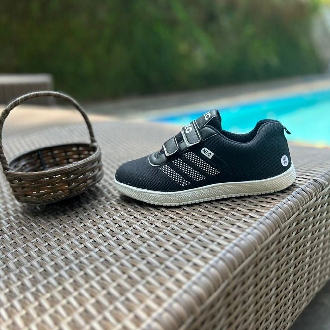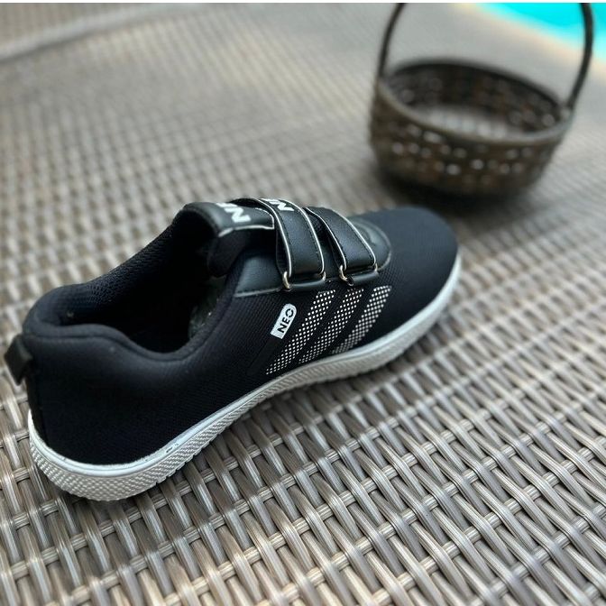 SEPATU ANAK SEKOLAH NEO HITAM KRETEKAN TANPA TALI SNEAKERS TERBARU TERMURAH DI
