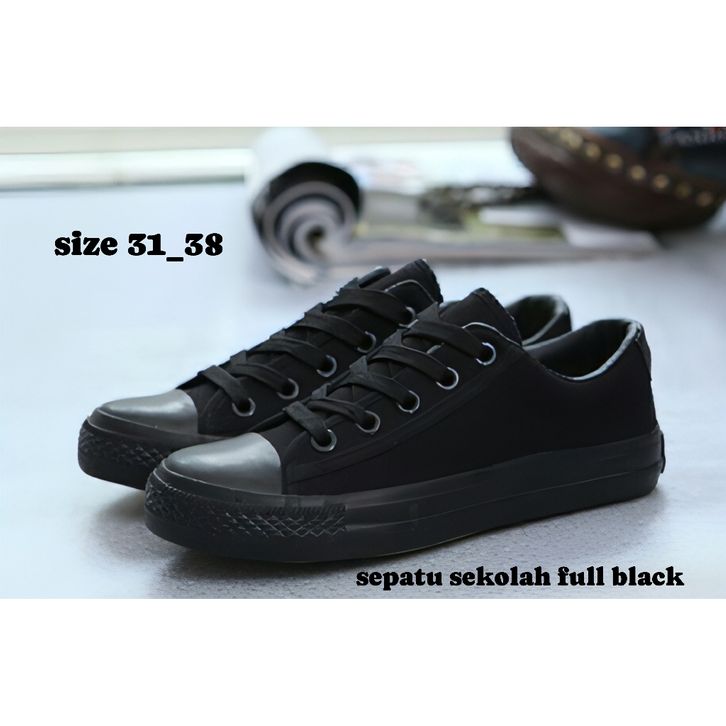 Max Star Sepatu Anak Sekolah Full Hitam Size 31-43