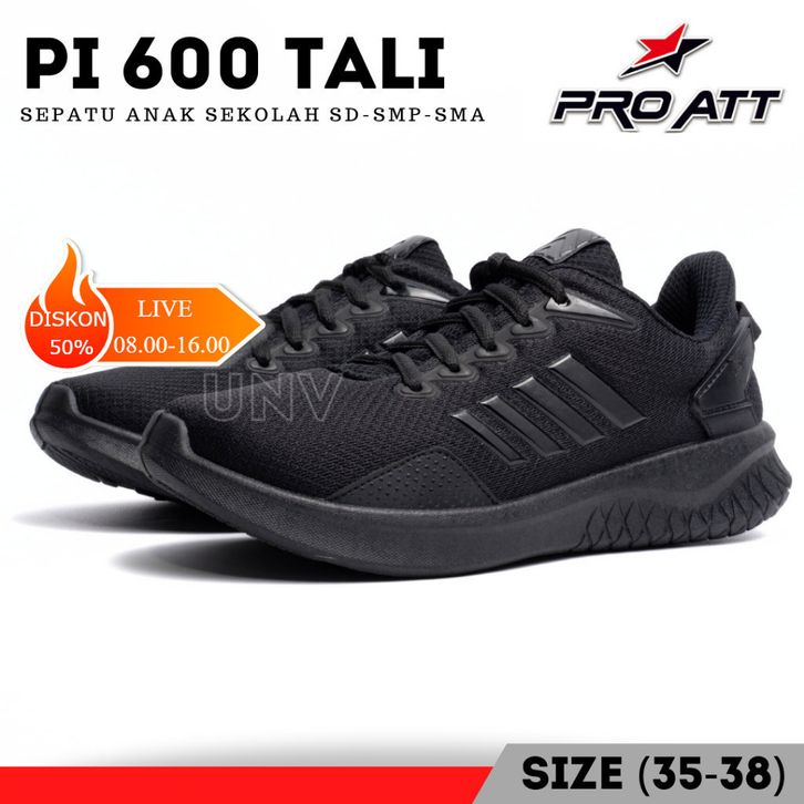 Sepatu Sekolah Anak Laki Perempuan SD SMP Pro Att Pi 600 Snaekers running lari Full Hitam
