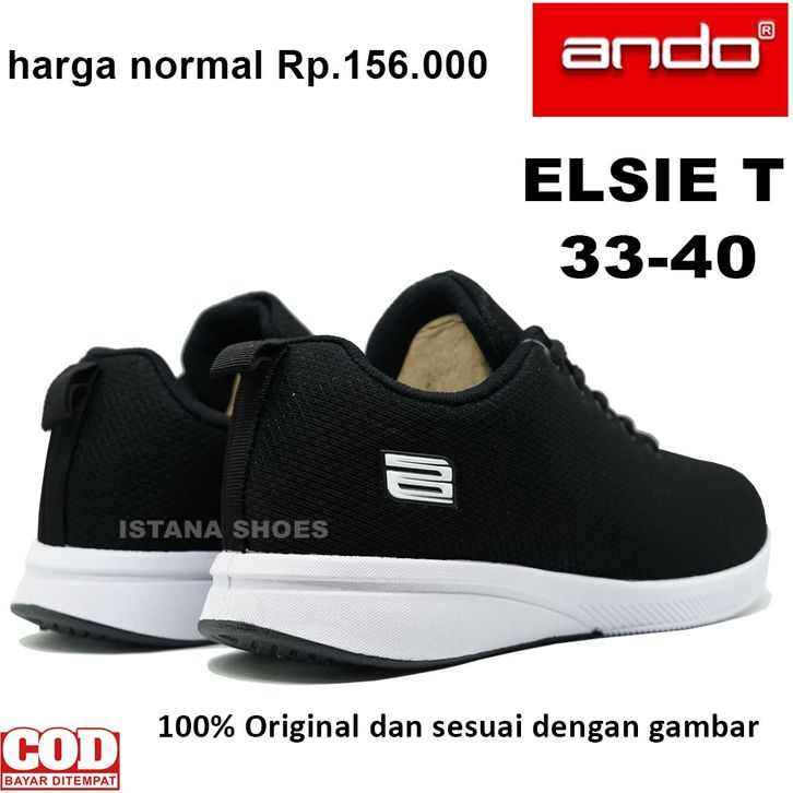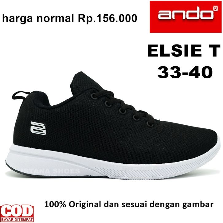 SEPATU SEKOLAH ANAK LAKI LAKI PEREMPUAN MODEL TERBARU ANDO ELSIE HITAM PUTIH, SEPATU SEKOLAH SD SMP SMA KETS