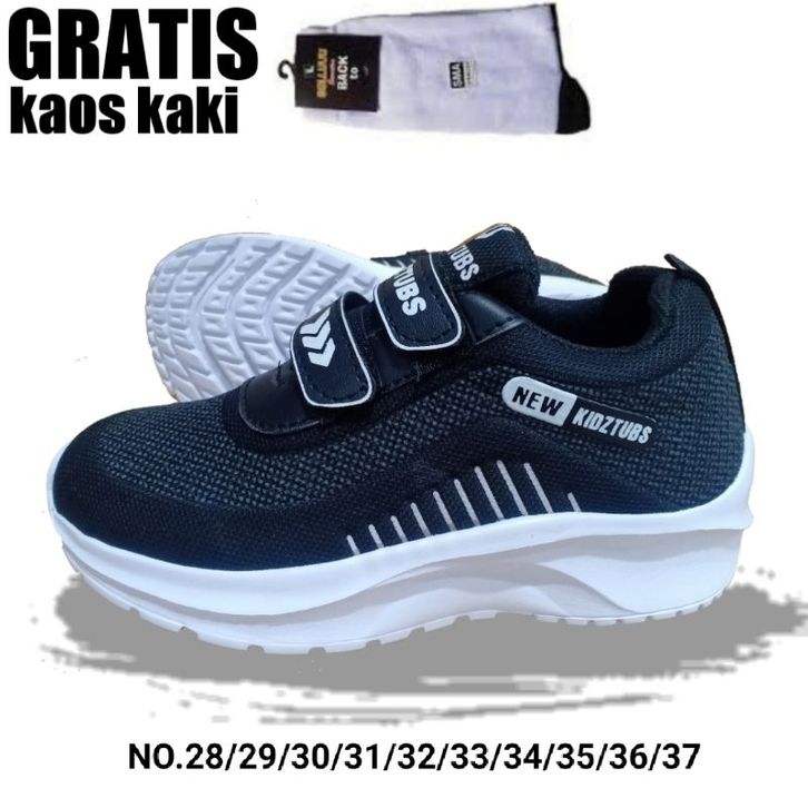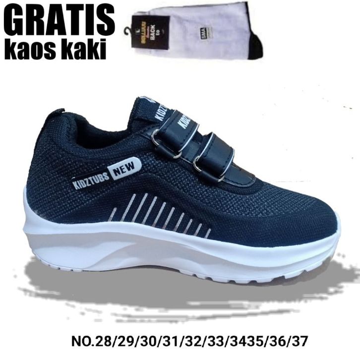 Sepatu Sekolah Anak Laki Laki Perempuan Cewek Cowok Warna Hitam Murah Tali Perekat Rekat Kecil Tanggung Umur Usia PAUD T