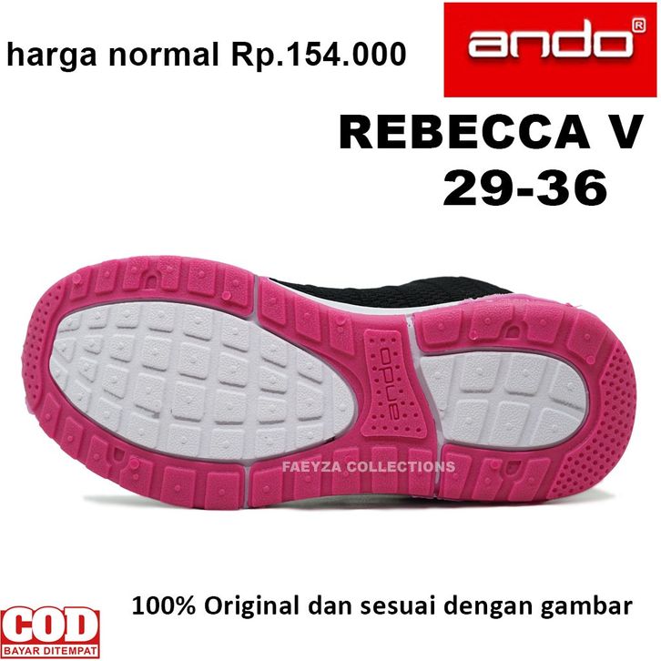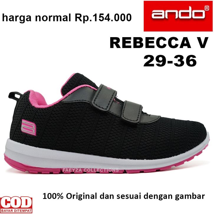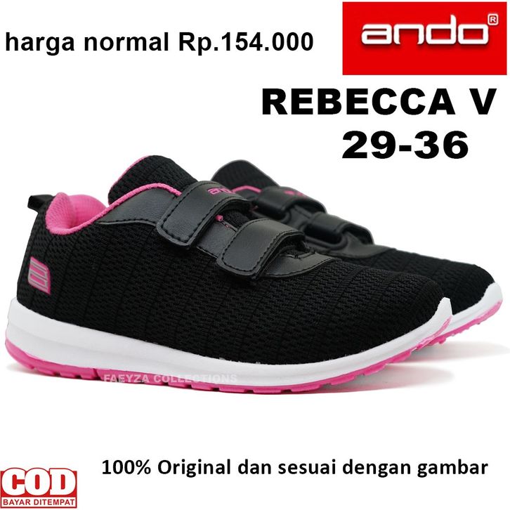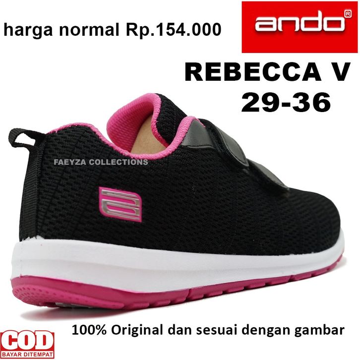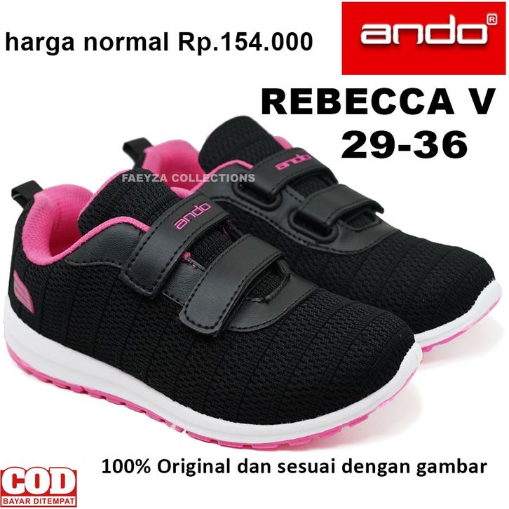 SEPATU SEKOLAH ANAK PEREMPUAN ANDO REBECCA HITAM PINK PEREKAT SNEAKERS TK SD SMP