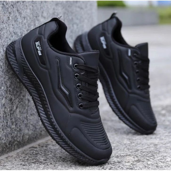 "FREE BOX"Sepatu Sekolah Hitam Bertali Pria Korean Trendy LV0527