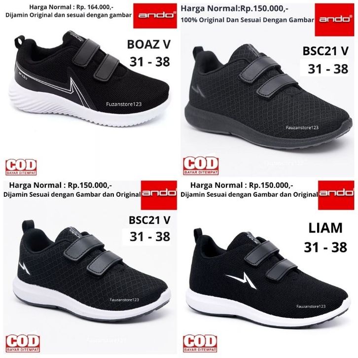 SEPATU SEKOLAH ANAK LAKI LAKI PEREMPUAN BSC21 LIAM BOAZ BSC PEREKAT HITAM PUTIH SD SMP ORIGINAL SEPATU ANDO ANAK LAKI LA