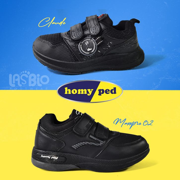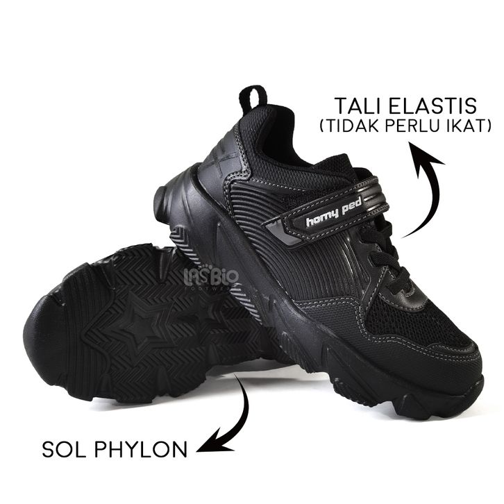 Homyped Sepatu Sekolah Sneakers Hitam Polos Cowok Cewek