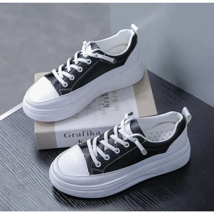 Sepatu Sneakers Fashion Hitam Wanita Korean Style Hits Terbaru 2024 / Sepatu Sekolah Wanita Hitam Polos /Sepatu Hitam Pu