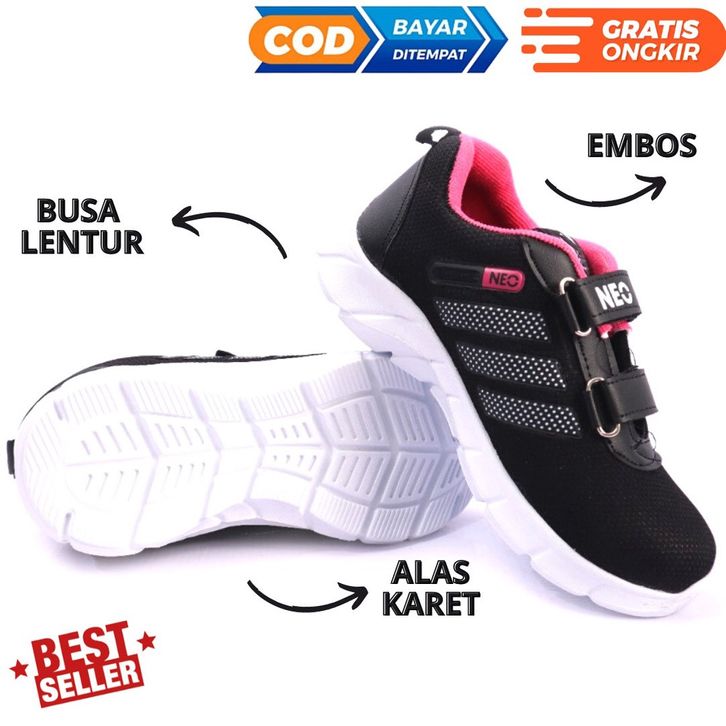 Sepatu anak sekolah TK SD umur 4-15 tahun hitam polos | Sepatu Sneakers anak | sepatu anak laki laki dan perempuan