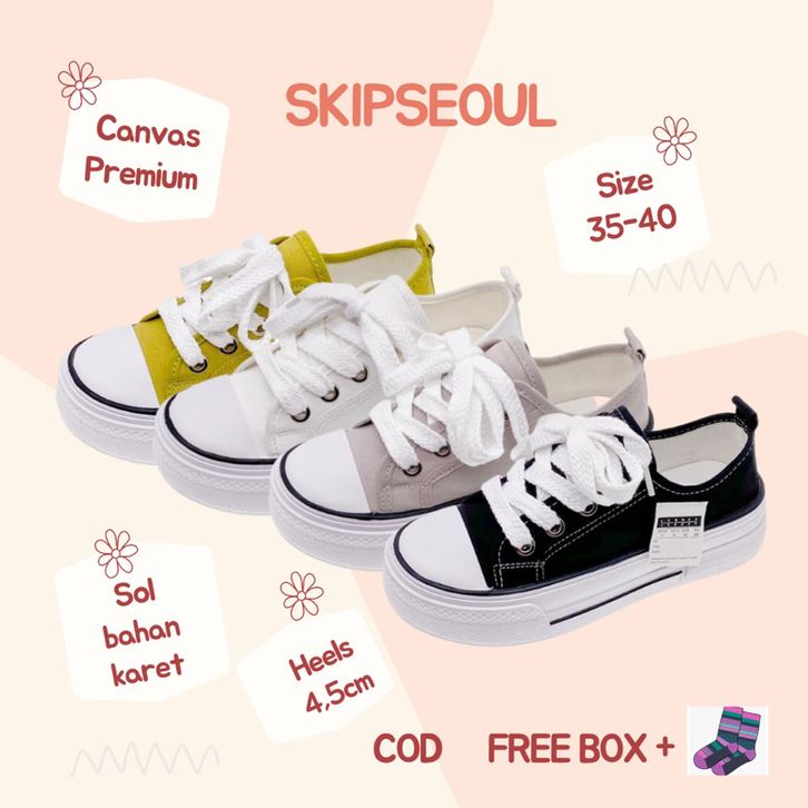 TBIG Sepatu Sekolah Wanita SKIPSEOUL Sepatu Kanvas Import Wanita Sekolah Kuliah Kekinian Trendy TOP PRODUK