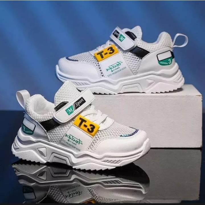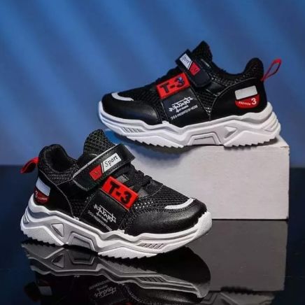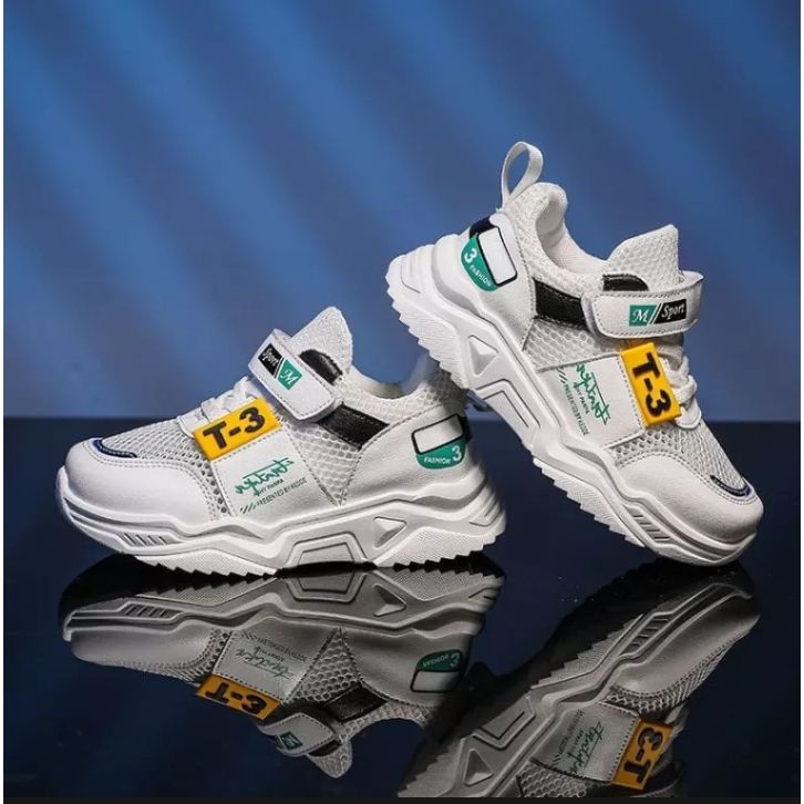 Sepatu Anak Laki-Laki 26-35 Sepatu Sekolah Anak SD Hitam Putih Perekat Sneakers Casual sepatu T3 sepatu sneaker anak la