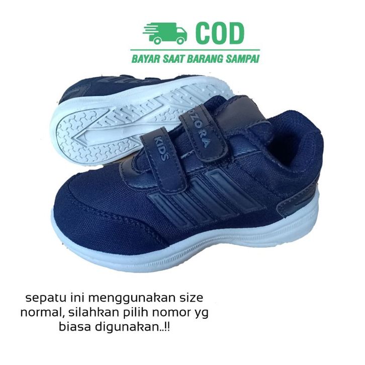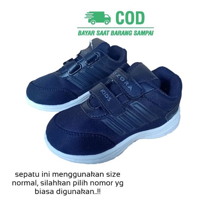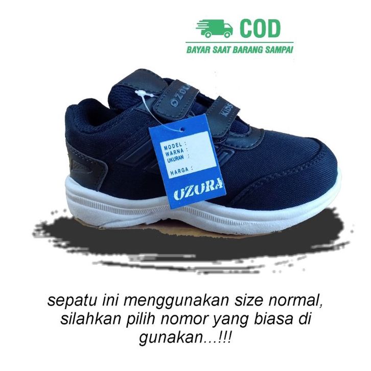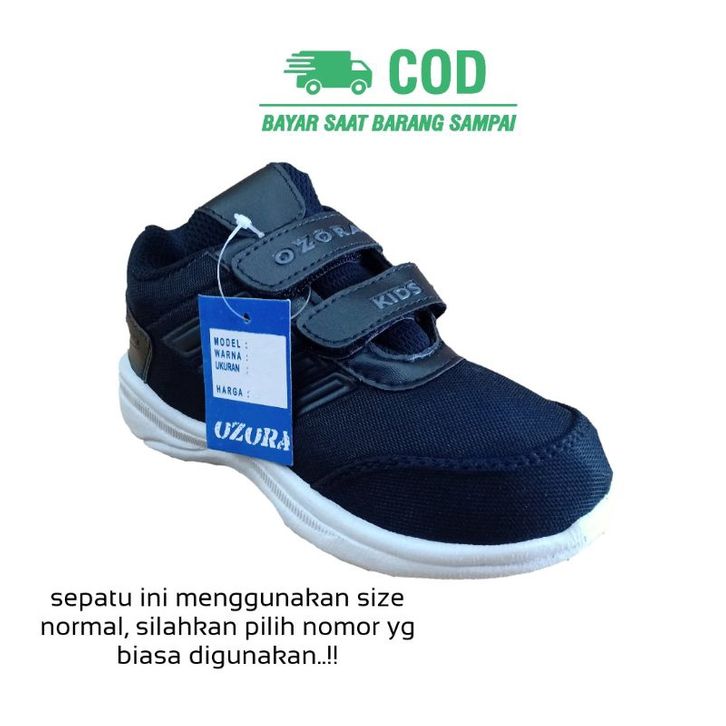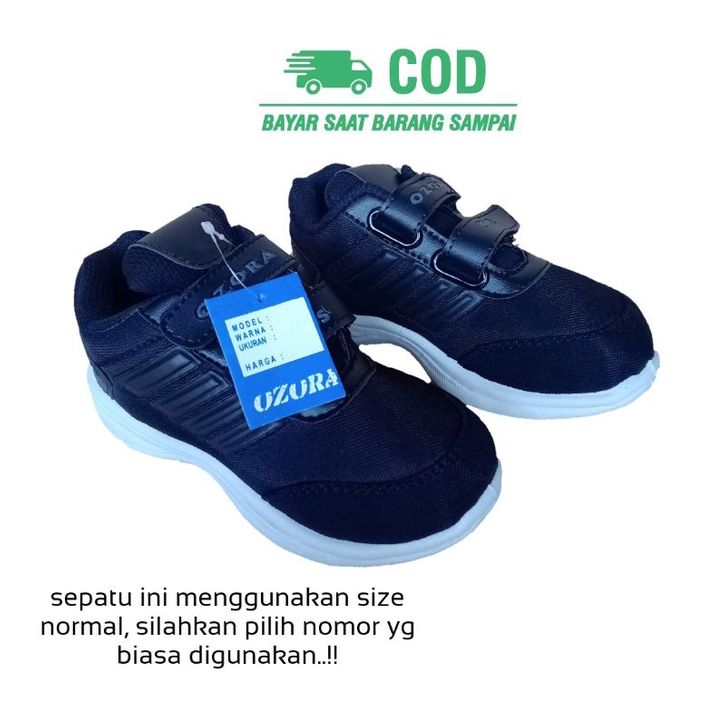 Sepatu Sneaker Sekolah Anak Anak Laki Laki Perempuan Usia Umur Paud Tk SD Smp Warna Hitam Rekat 2 3 4 5 6 7 8 9 10 11 12